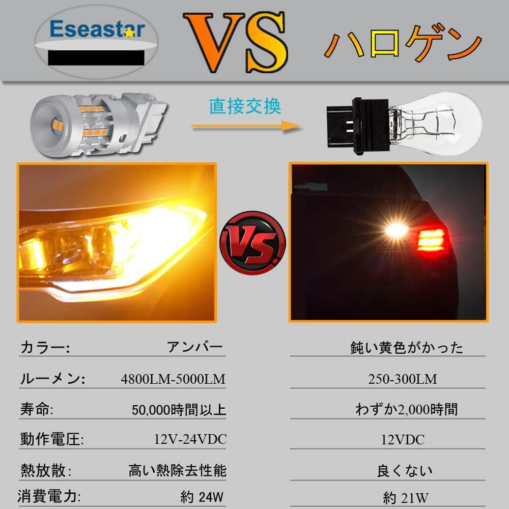 Eseastar T25 P27W 3156 3157 LED ウィンカー バルブ ハイパー点滅なし アンバー 爆光 12V-24V キャンセラー内蔵 ステルス車検対応 2個入り