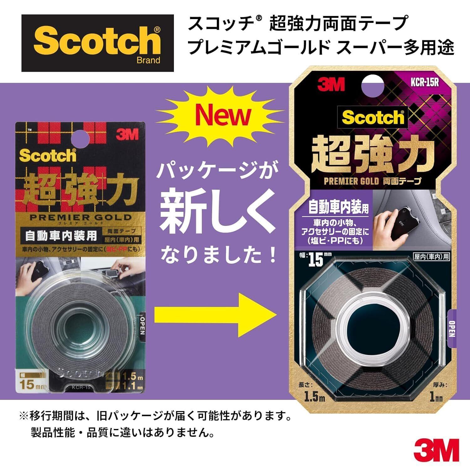 3M スコッチ 超強力両面テープ プレミアゴールド 自動車内装用 幅15mm長さ4m SCR-15R