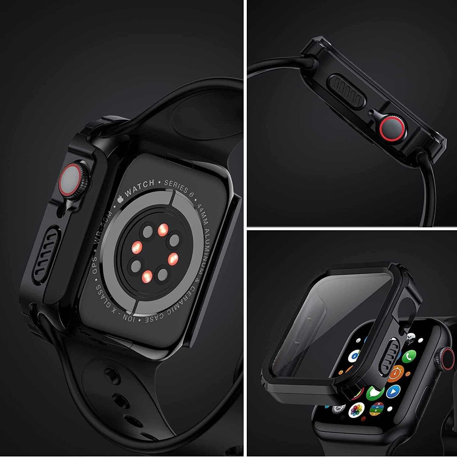 【特価セール】[AMAPC] 【2023強化版】 for Apple Watch ケース 45mm 41mm 防水ケース IP68完全防水 バンド 水泳・スポーツ専用 ガラスフィルム 一体型 apple watch 用 カバー アップルウォッチ ケース 全面保護 耐久性 傷防止 Apple Watch 9/8/7 45mm対応 ブラック