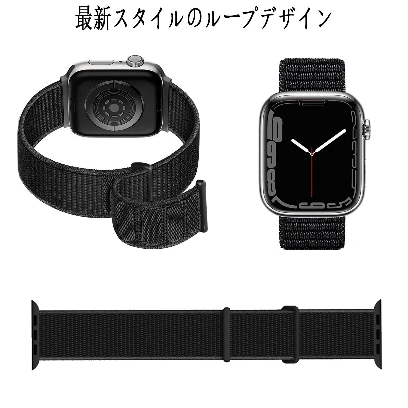 【適用モデル】ナイロンスポーツループバンド コンパチブル Apple Watch Series 10 9 8 7 6 5 4 SE Ultra。ウォッチケースのサイズに応じて、対応するバンドサイズ40mm 41mm 42mmまたは44mm 45mm 46mm 49mmを選択してください。