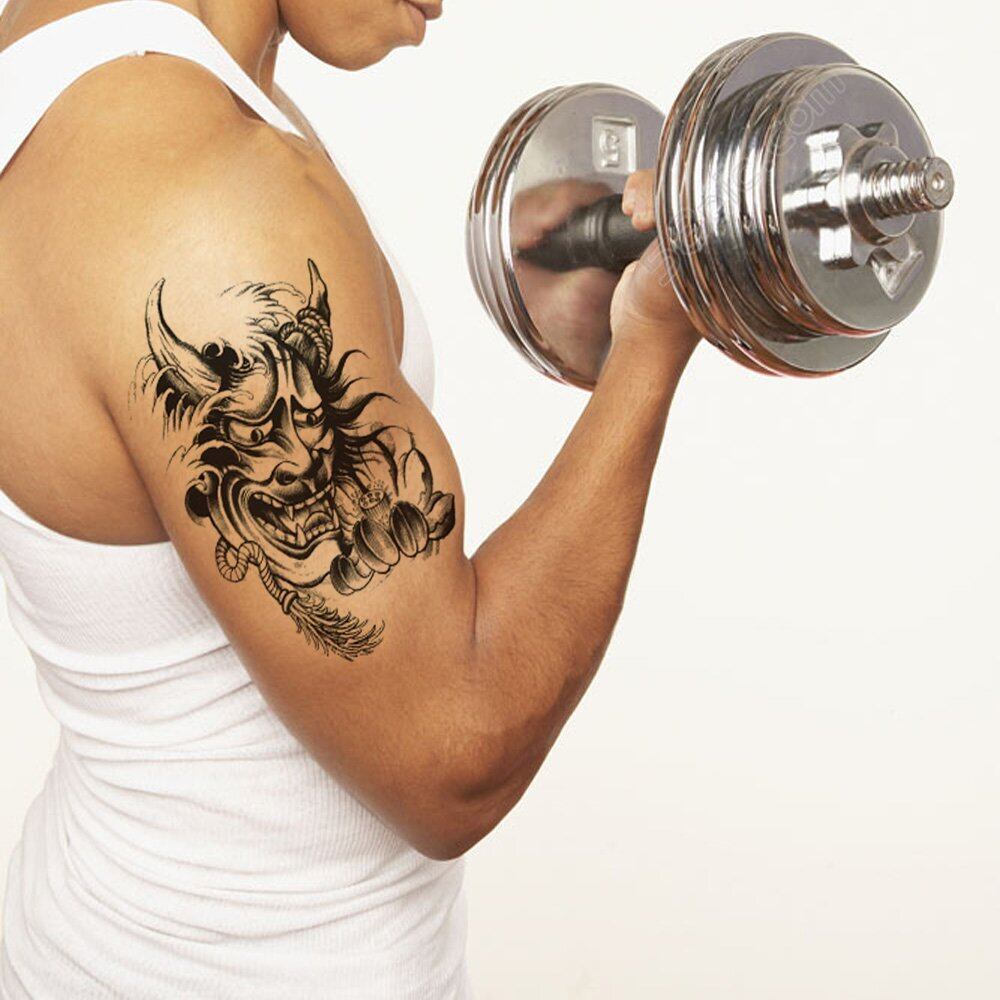 Yesallwas タトゥーシール 般若 お面(はんにゃ) 3枚セット 長持ち タトゥーステッカー ボディーシール メンズ 刺青シール 防水 腕、足、体、胸、肩、背中に簡単貼る TATOO 15x21cm (A)