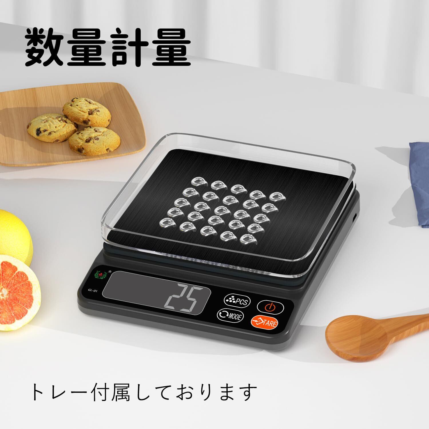 拡大した計量皿(11.3cm*11.3cm)&トレー付き、さらに5kgまで大計量範囲、最小表示0.1g、大変使いやすいです。
