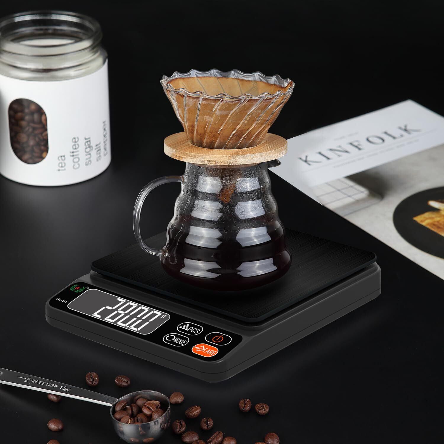 【おしゃれなブラック設計】ブラックボディ&チタンメッキのステンレス計量皿、お茶やコーヒーの場合、高級感溢れます。