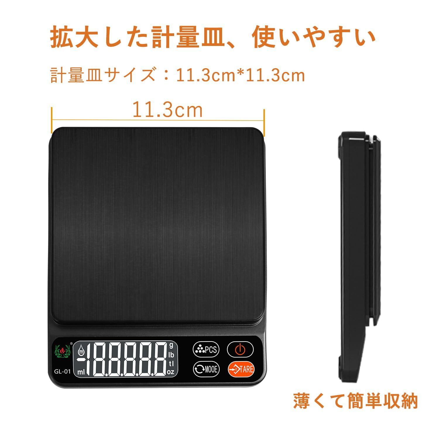 【新春セール】SCALE JAZZ はかり 計量皿拡大 電子秤 5000g 0.1g単位 5kg0.1g 表示画面拡大 コンパクト数量計量 風袋引き 電源自動OFF デジタルスケール スケール (ブラック)…