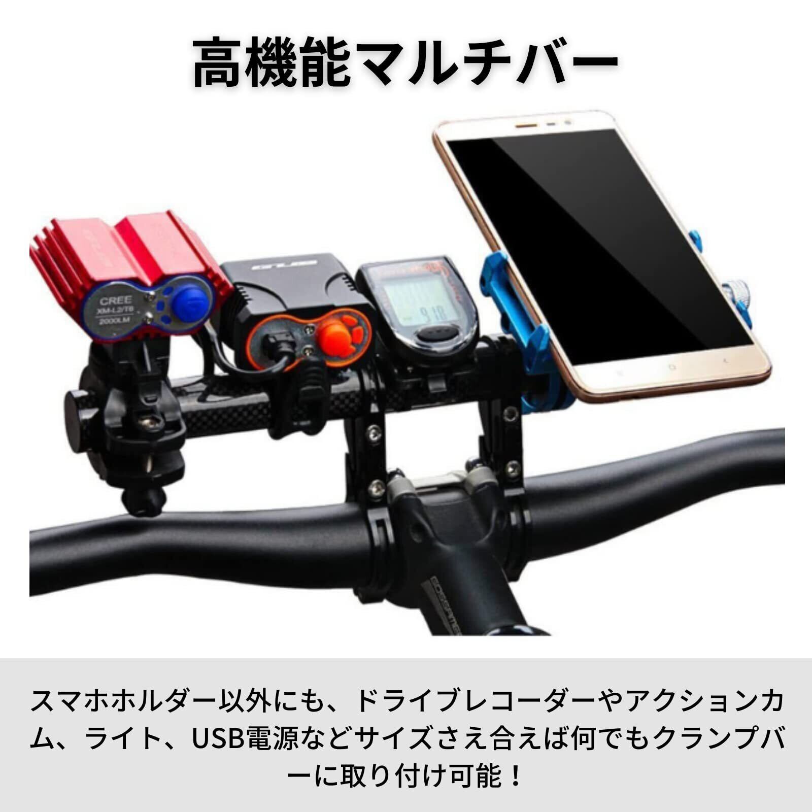 【高機能マルチバー】スマホホルダー以外にも、ドライブレコーダーやアクションカム、ライト、USB電源などサイズさえ合えば何でもクランプバーに取り付け可能!