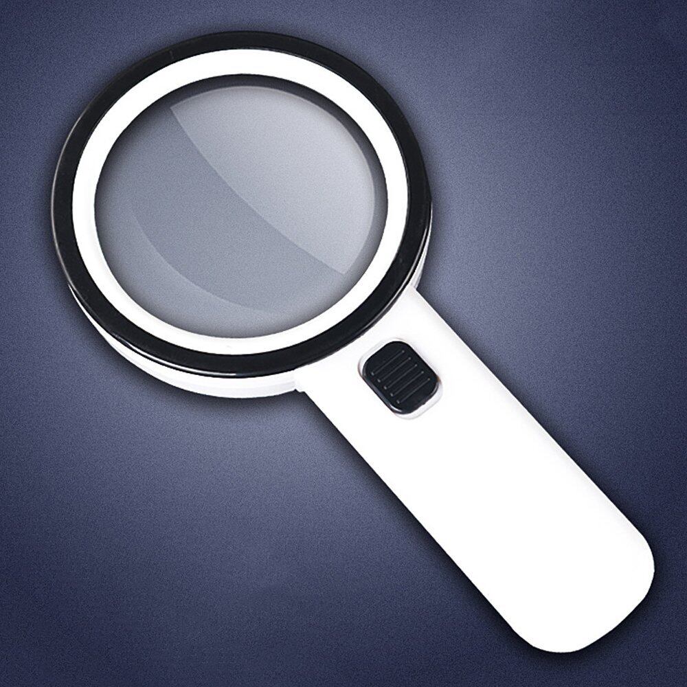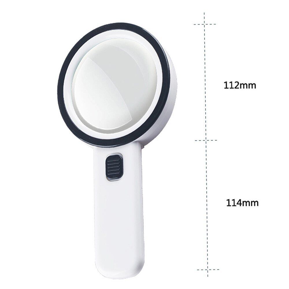 10倍 手持ちルーペ LEDライト付 拡大鏡 虫眼鏡 読書用 宝石鑑定 ホワイト