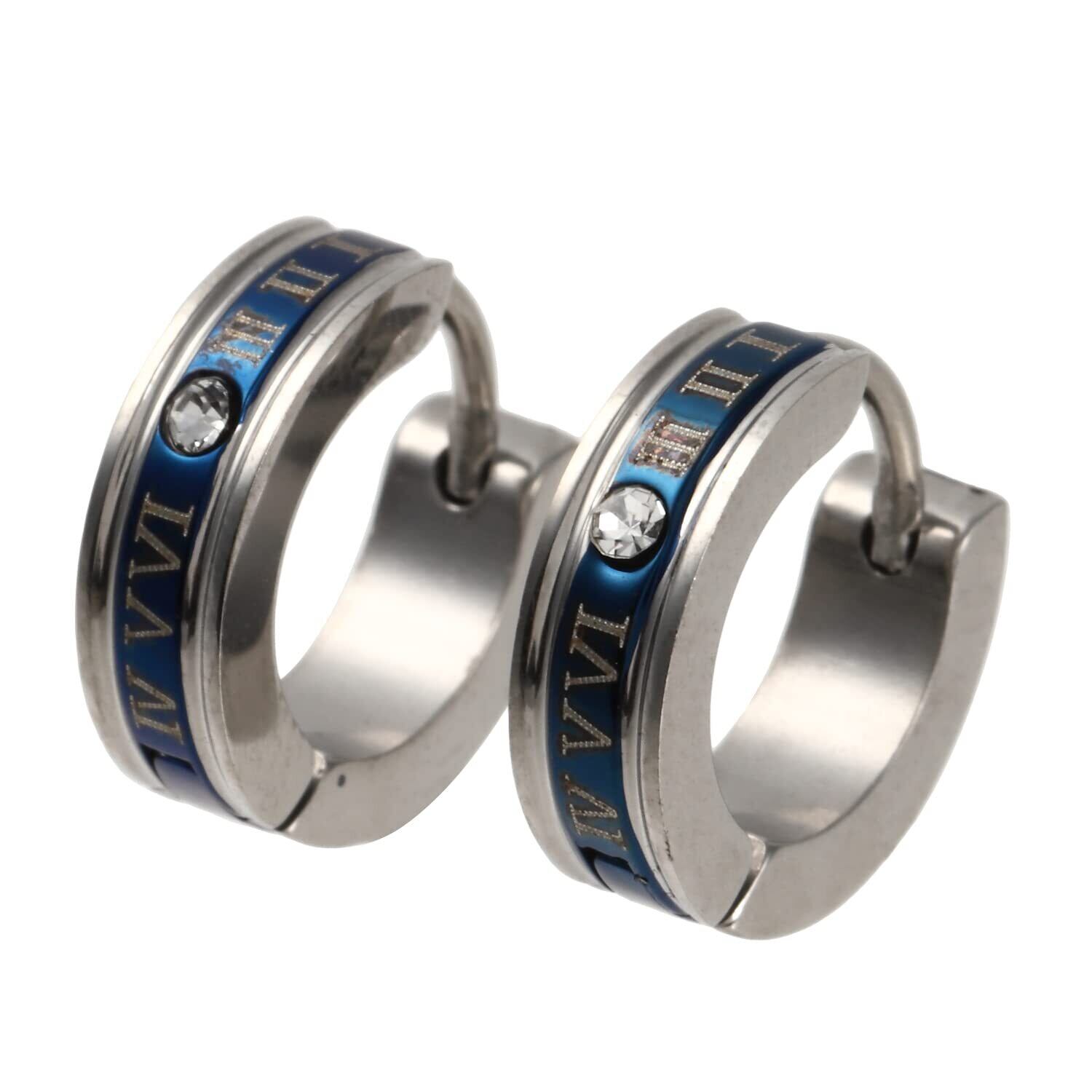 【人気商品】[アロハモニ] ローマ数字 ステンレス イヤリング フープピアス イヤーカフ フェイクピアス 両耳 2個セット フープ リング ノンホールピアス キュービックジルコニア メンズ レディース ユニセックス
