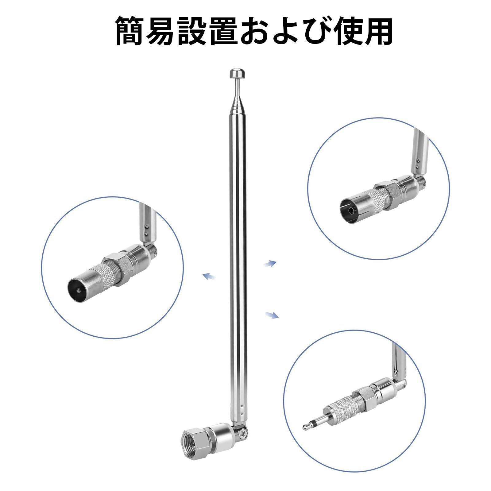 WUXIAOCSG FMアンテナ ラジオ伸縮アンテナ 7節 75CM F型 ネジ式端子 ポータブルラジオアンテナ交換用 7MM 3種変換コネクタ付き 携帯型 ホームステレオレシーバー Vedio ホームシアターレシーバー