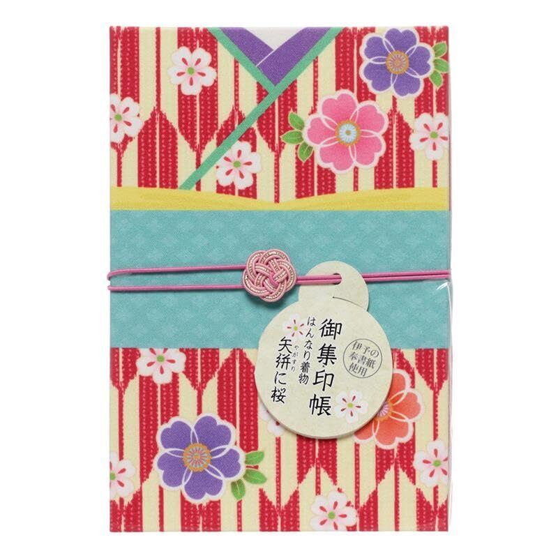 【在庫処分】御朱印帳 集印帳 はんなり着物 矢絣に桜 (やがすりにさくら) 160×109mm 蛇腹式 24折 M002-063