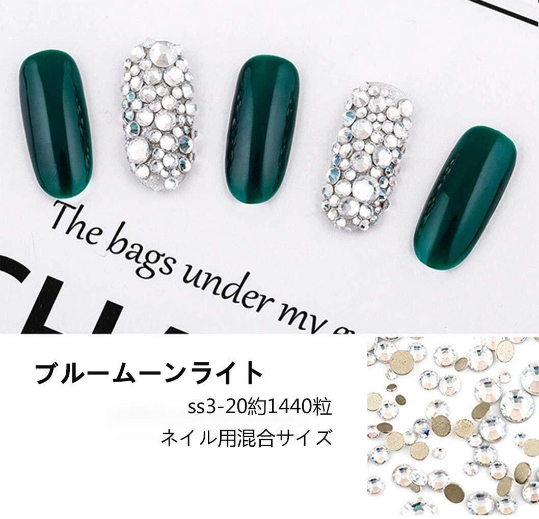 【在庫セール】XIULI カラー ラインストーン DIY ネイルを飾てと服装使用 高い採光 ss3-20約1440粒(ss3-20混合サイズ) (ブルームーンライト1440)