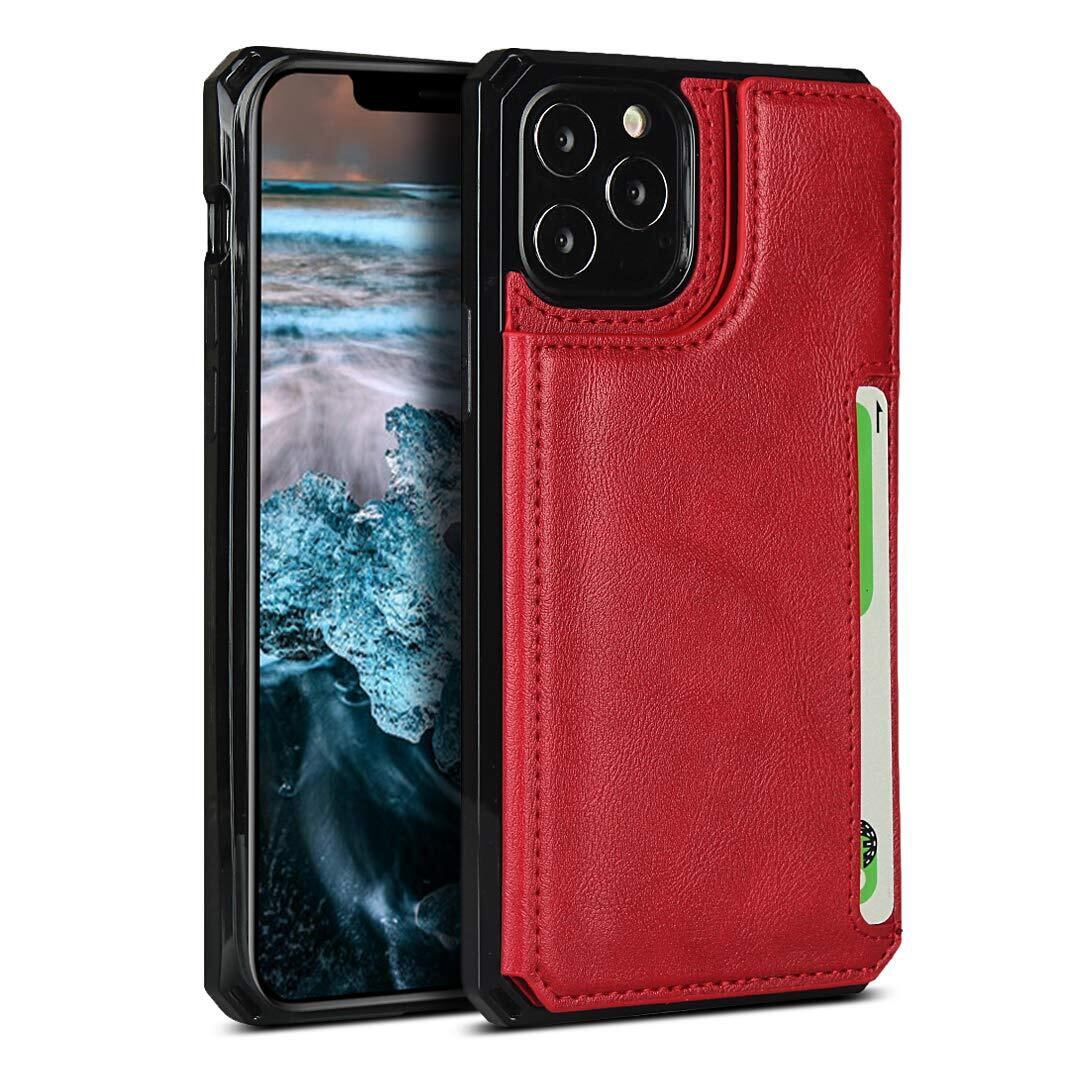 Pelanty iPhone 12/ iPhone12 Pro 6.1'' ケース iPhone12 Pro ケース アイフォン12 Pro ケース縄掛け 6.1インチ 背面 手帳型 PUレザー IC カード収納 軽量 スタンド機能 ボタン磁気 多機能 スマホケース 耐衝撃 滑り防止 全面保護 ストラップ 携帯カバー [5色選択]レッド