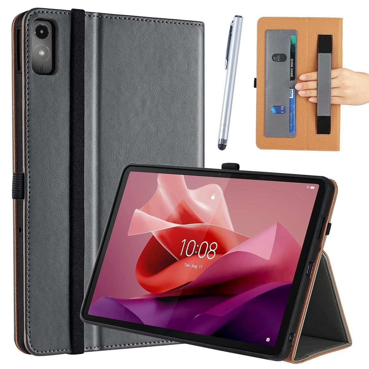 【特価セール】【タッチペン付】 Lenovo tab7 / Lenovo Tab M10a 5G LET02 ケース レノボ タブ7 ソフトバンク softbank tab7 A301LV / AU タブレット LTE02 カバー 手持ちバンド 手持ちホルダー付き 良質PUレザー おしゃれ 手帳型 シンプル 耐衝撃 ビジネス オートスリープ機能 法人大量注文対応(T0283-Tab7-GRY)