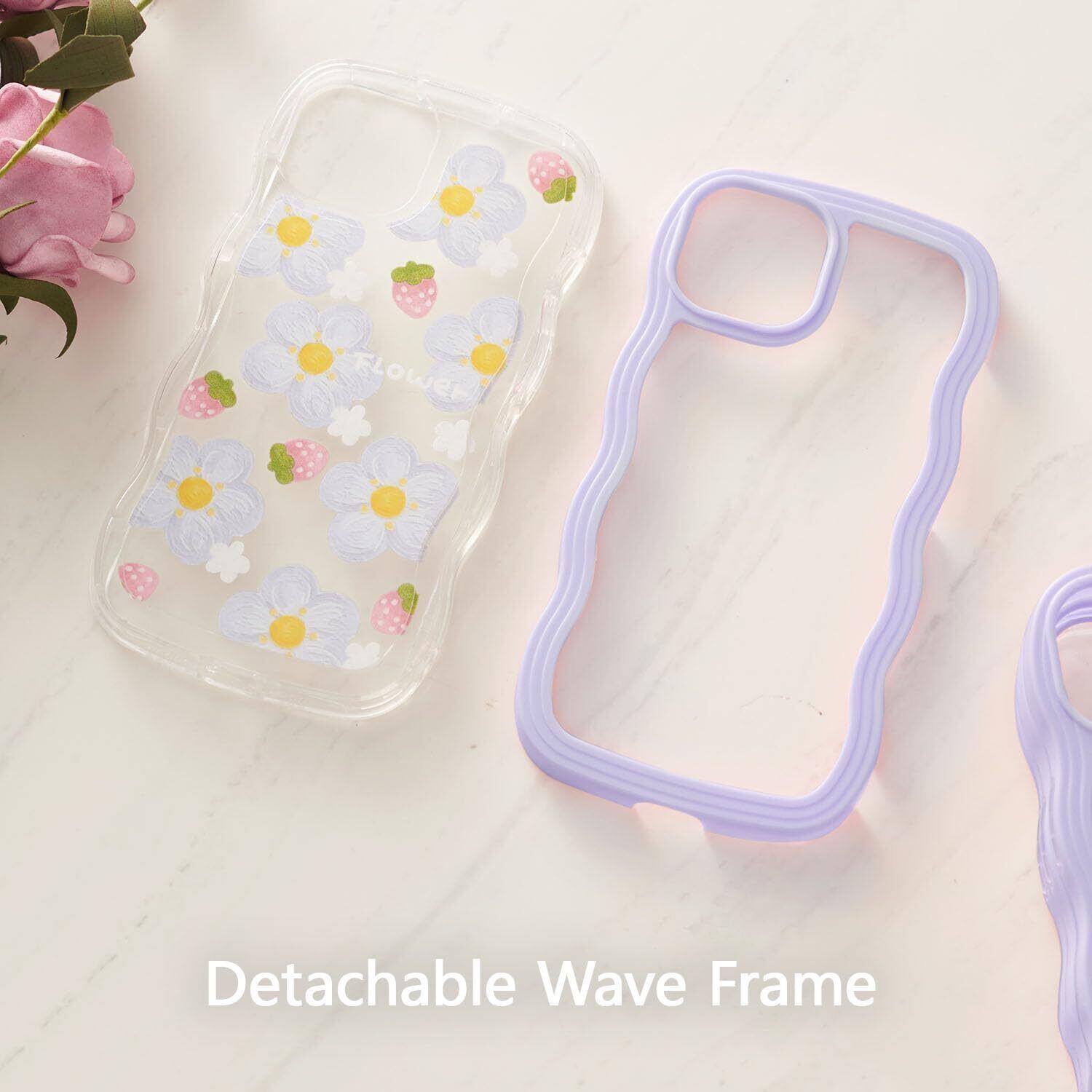 【透明感 ▪ フィット感】背面は透明度ポリカーボネートの素材で、iPhone 14/iPhone 13本来の美しさと高級感をそのままに映り出し、いつものスマホに上品さをプラス。サイド周りのウェーブ部分はプラスチック素材で取り外し可能です。