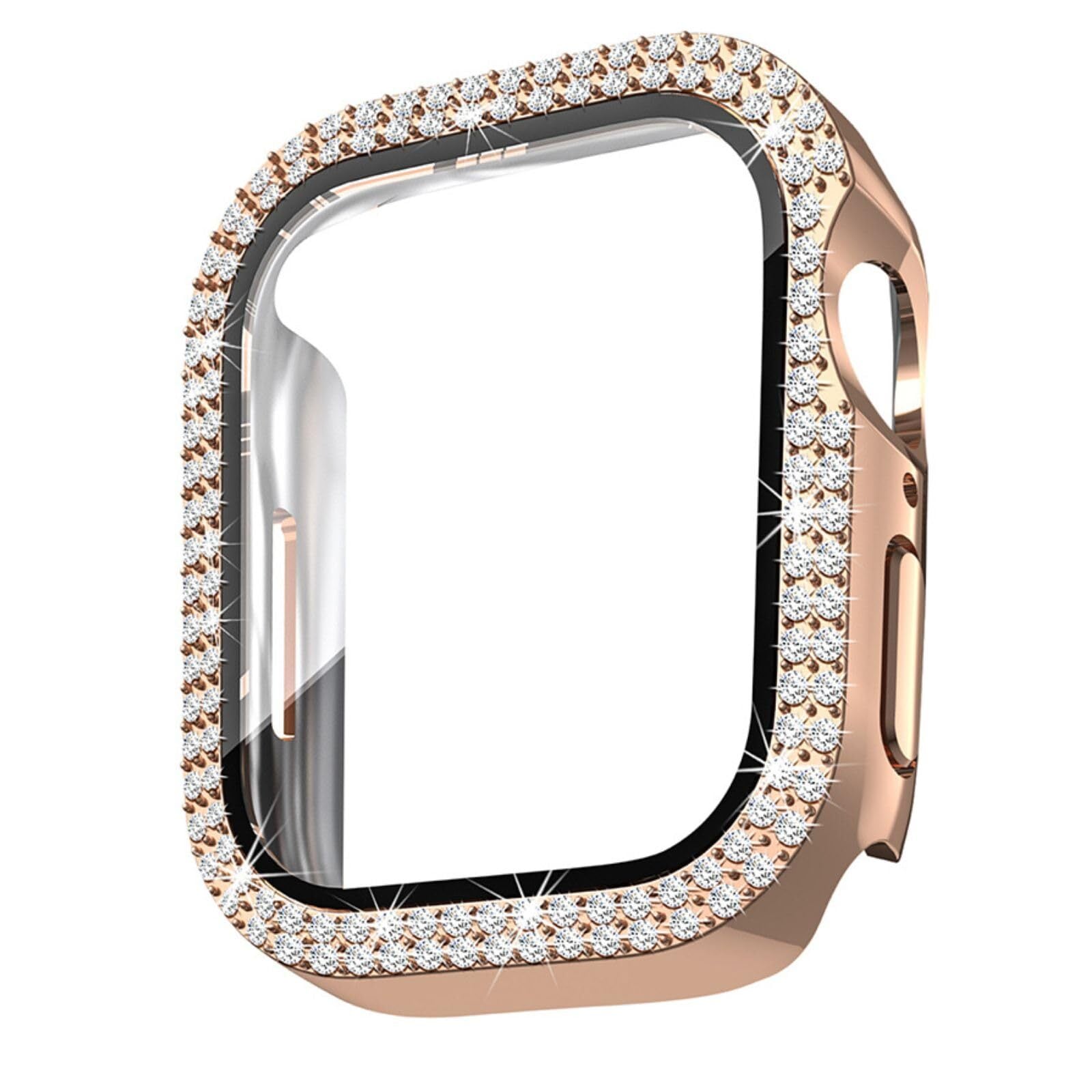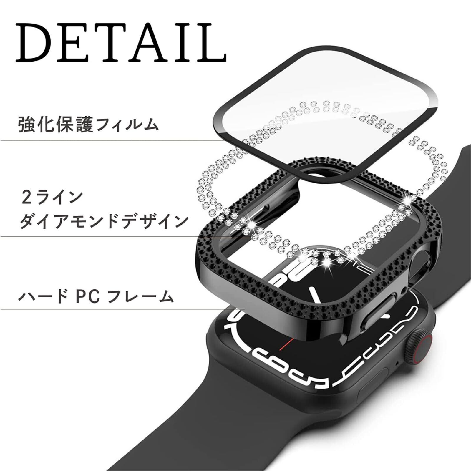 アップルウォッチシリーズ1/2/3/4/5/6/7/8/SEに対応するカバーケース。キラキラストーンが埋め込まれおり、つけるだけで華やかさアップ!ケース幅38mm、40mm、41mm、44mm、45mmに対応