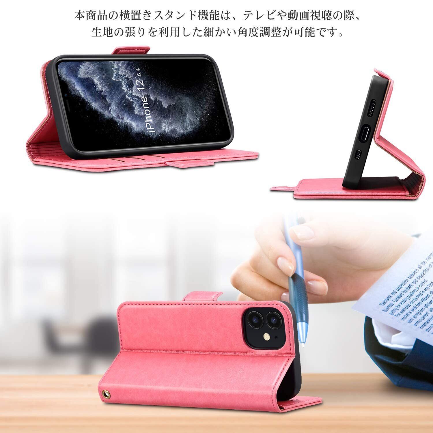 使い勝手抜群のiphone 12 mini手帳型ケース、手帳型カバーの機能が搭載して、内側には三つのカード入れとフリーポケットがつき、カードや定期券の収納に優れていて、横置きにしてスタンドになり、動画視聴がすごく便利なスマホケースです。