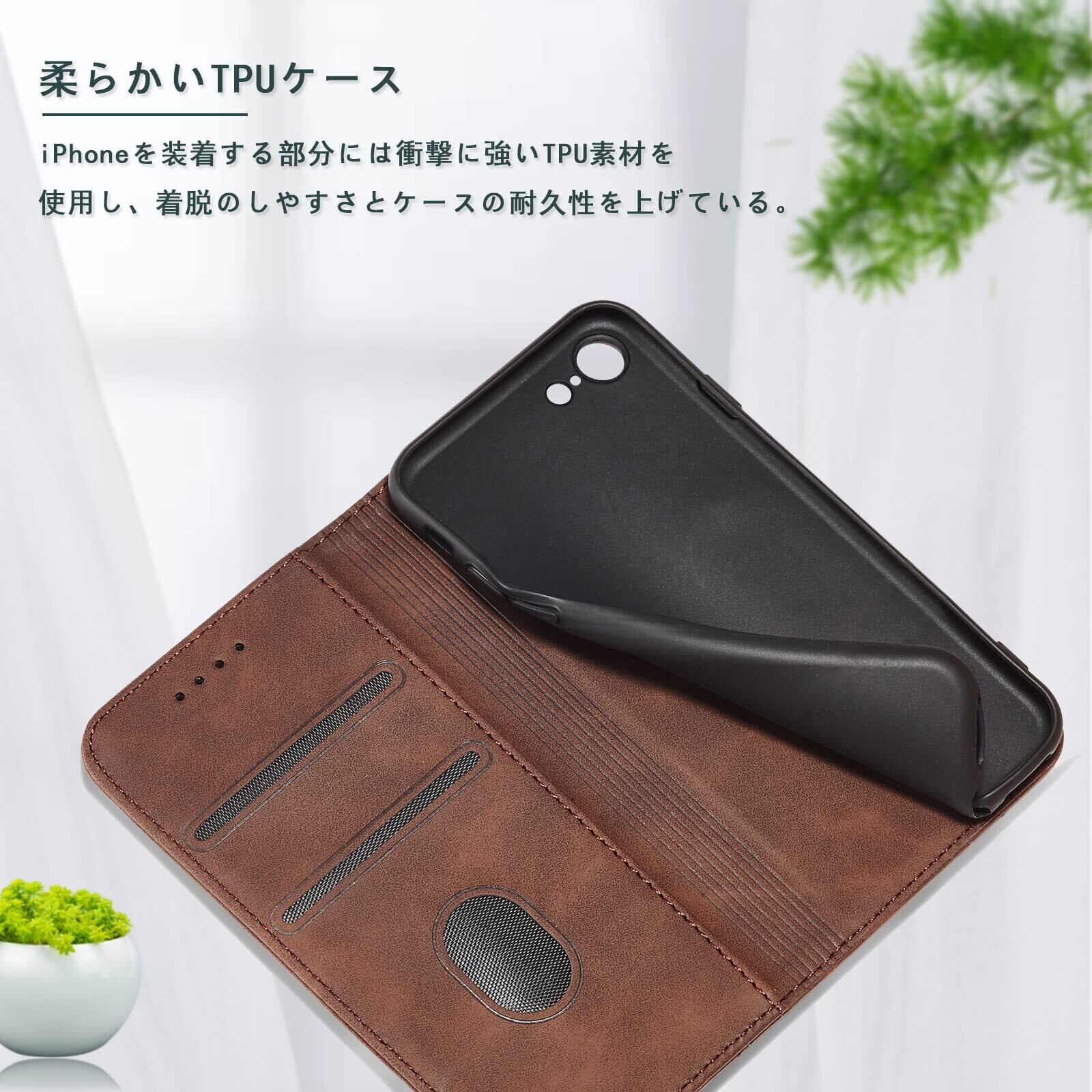 PinLiSheng iPhone SE ケース 手帳型 第2世代 第3世代 スマホケース iPhone 8 7 携帯カバー レザー 軽量 薄型 耐衝撃 耐摩擦 全面保護 マグネット式 カード収納 スタンド機能 4.7インチ対応(コーヒー色, iPhone8 iPhone7 iPhone SE2 iPhone SE3)