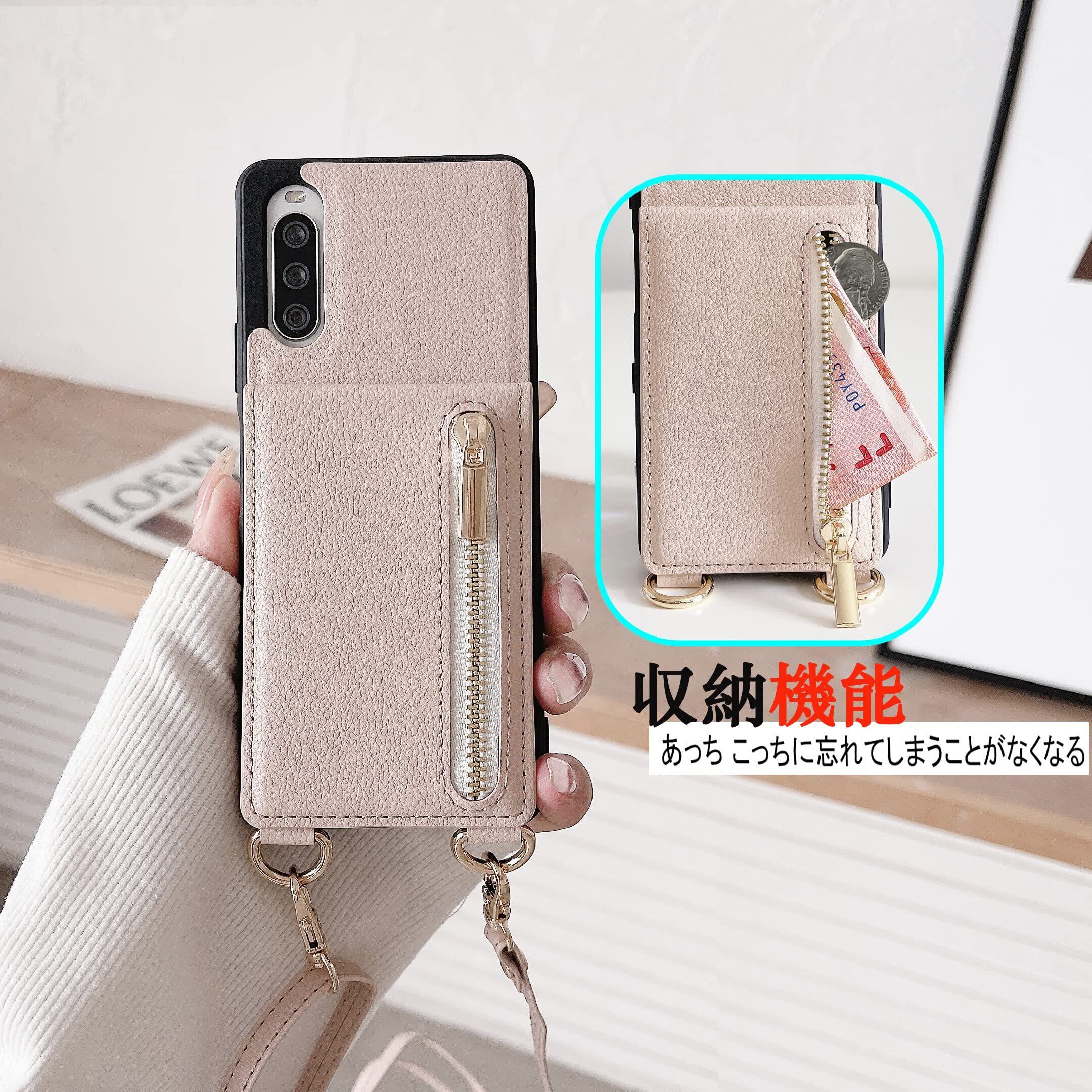 Xperia 10 IV ケース 高質レザー Xperia 10 IV カバー 肩掛け 首かけ 斜めがけ SO-52C ケース ショルダー エクスペリア 10 IV ケース ミラーケース SOG07 ケース 便利 カードポケット スタンド機能 落ち着いた色 調節可能 軽量 多機能 縦置き ICカード収納 財布型 耐衝撃 携帯 鏡付き ケース (むぎいろ)