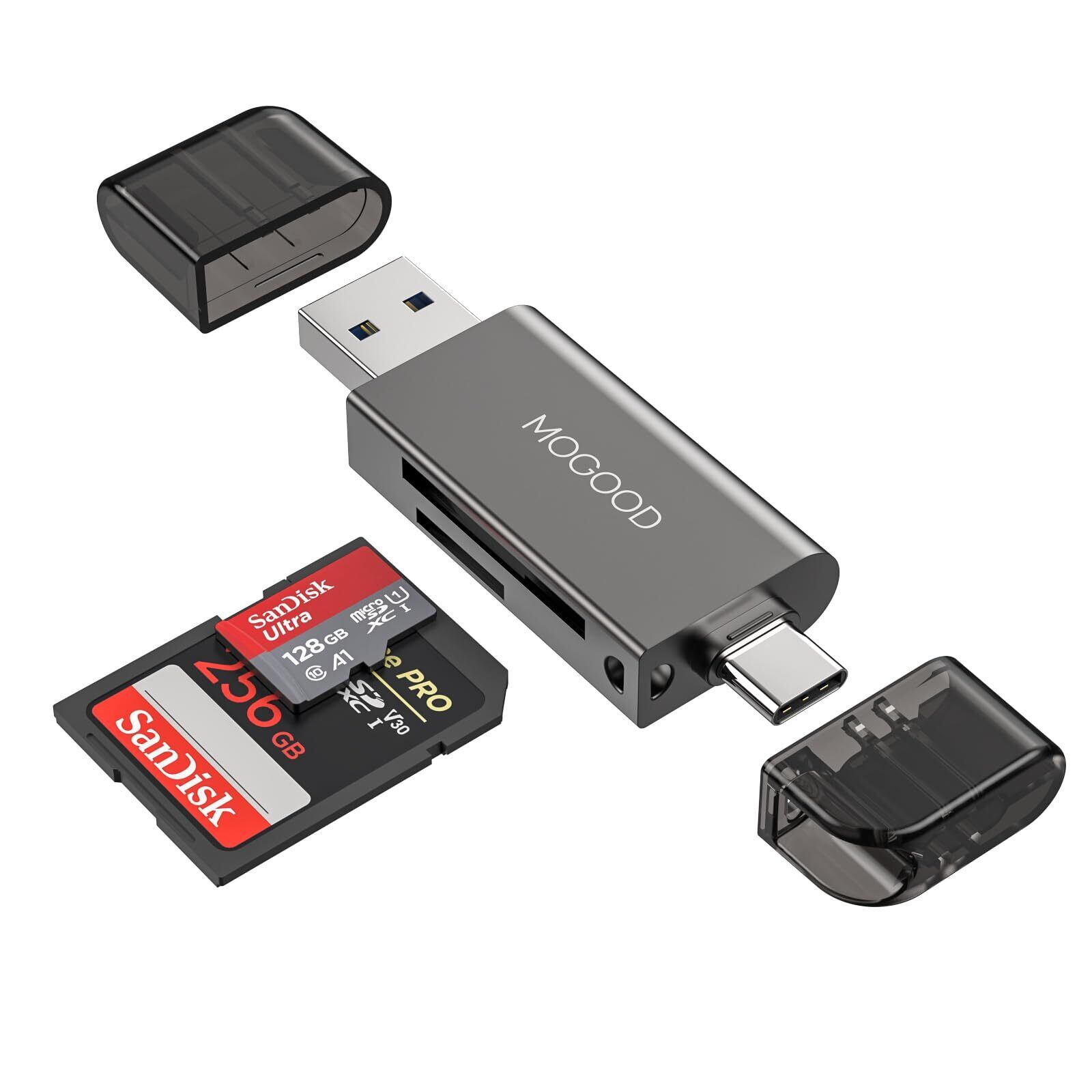 MOGOOD SDカードリーダ メモリカードリーダアダプタ USB 3.0からメモリカードリーダアダプタ Micro SDカードリーダデュアルコネクタ付き外部カメラSDカードSDHC SDXC MicroSD UHS-I