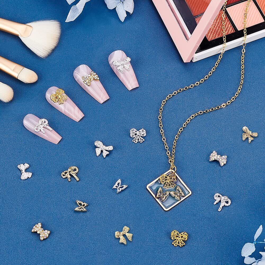 SUPERFINDINGS 6種 2色 72個入り ネイルパーツ 3D ネイルアートジュエリーパーツ 蝶々 ネイルデコレーション デコパーツ 立体 蝶結び 蝶 ネイルデコパーツ ハンドメイド 手芸 クラフト DIY 素材 収納ケース付き 合金製 ラインストーン付き キラキラ 可愛い 誕生日 就職 新生活向けプレゼント