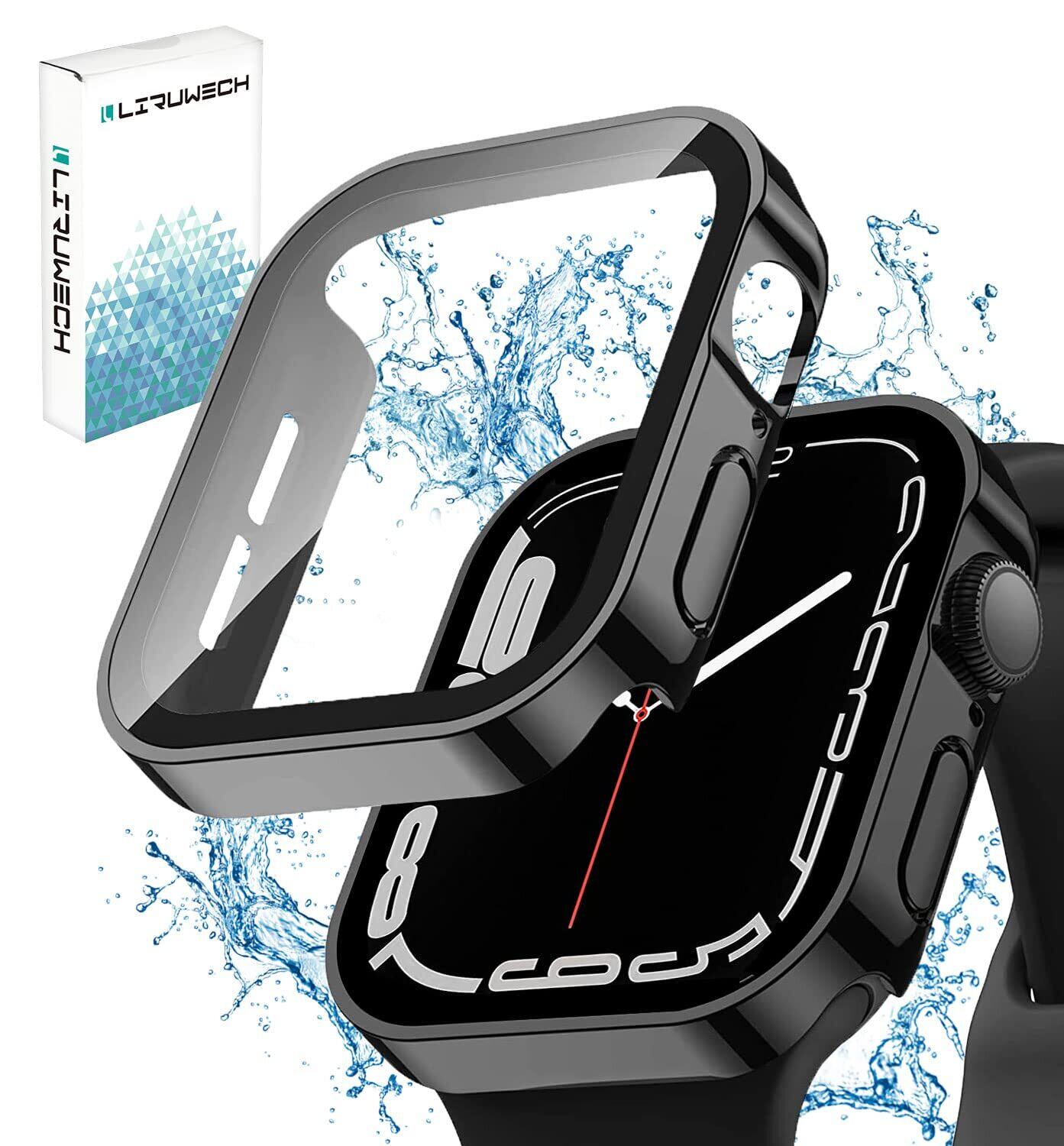 LIRUWECH Apple Watch 用 防水ケース 45mm 44mm 41mm 40mm アップルウォッチ保護カバー ガラスフィルム 一体型 3D直角エッジデザインSeries6/SE/5/4 PC素材 全面保護 超薄型 装着簡単 耐衝撃 高透過率 指紋防止 傷防止 (ブラック,Series6/SE/5/4,40mm)