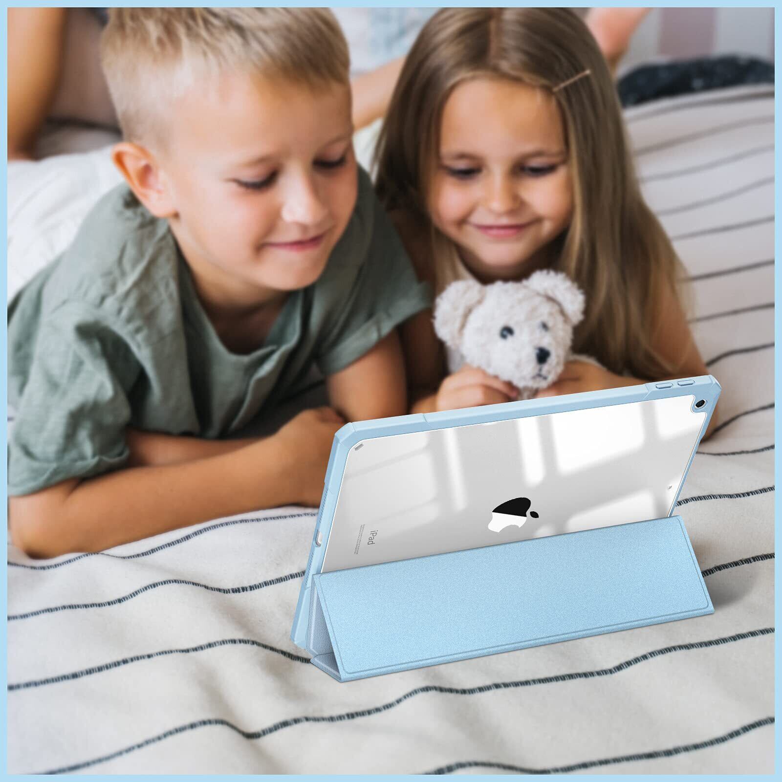 Fintie iPad 10.2 ケース iPad 第9 / 8 / 7世代 ケース 2021 2020 2019 透明バックカバー Apple Pencil 収納可能 三つ折スタンド スリープ機能 軽量 薄型 傷つけ防止 PU合成レザー TPU (モデル番号A2602、A2603、A2604、A2605)(スカイブルー)