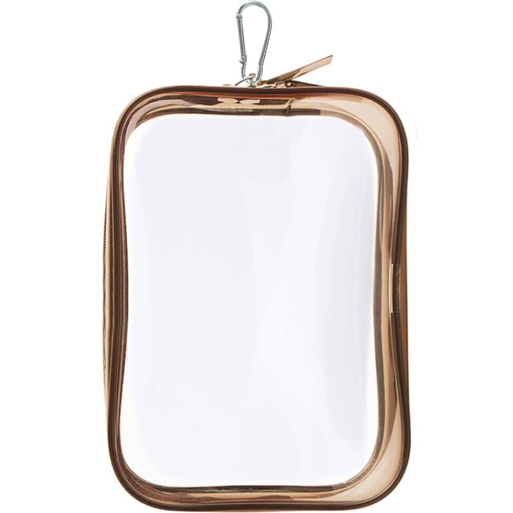 YUYAKESHI ケース バッグ 痛バック 防塵 ぬいポーチ 装飾 お出かけ 人形入れ 見せバッグ 透明 ぬいぐるみ クリアバッグ キーホルダー付 ファスナー用(M・茶色)