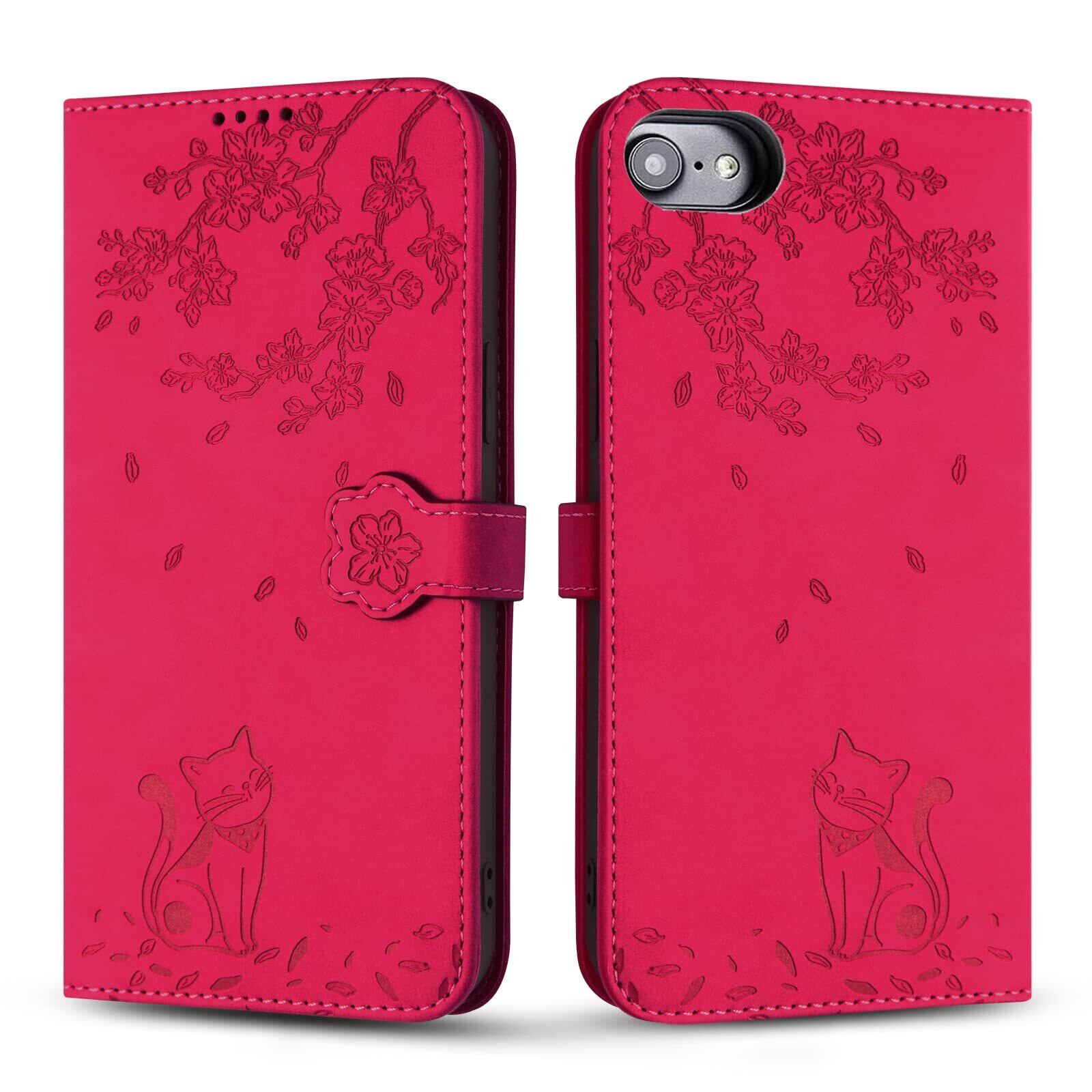 【在庫処分】iPhone SE 第3世代 ケース 手帳型 Rosbtib iPhone SE2 ケース 手帳型 ケース プラムブロッサム ラブリー 子猫柄 アイフォン7 ケース 手帳型 アイフォン8 スマホケース 高級PUレザー カード収納 iphone8 携帯カバー マグネット式 スタンド機能 iPhone SE3 ケース iPhone 6 iPhone 6s ケースカバー 財布型 (ローズレッド)