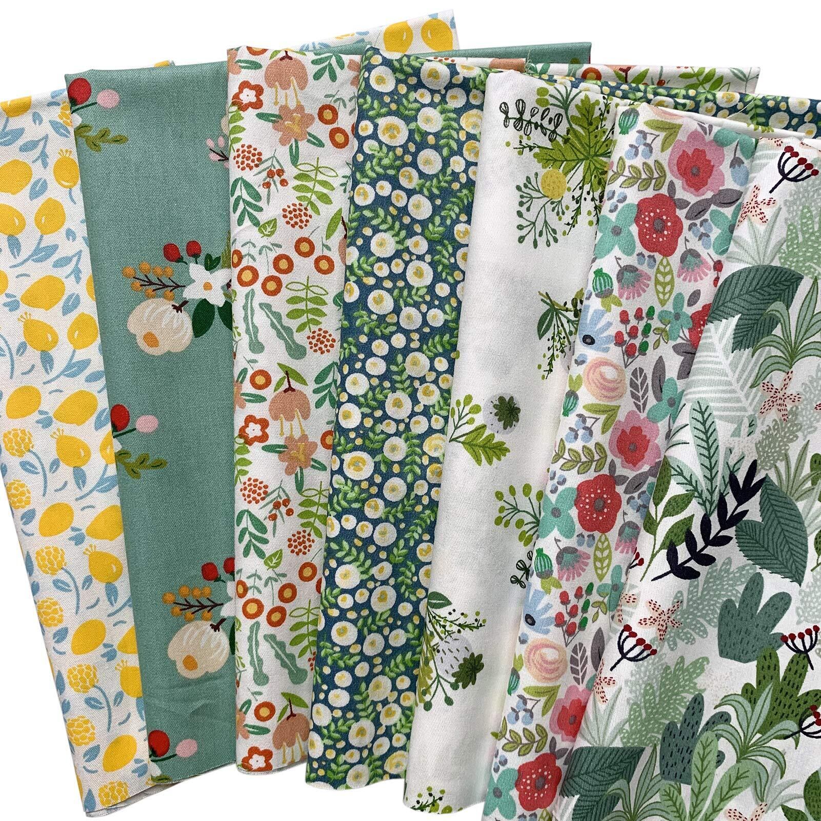【在庫処分】7枚 北欧風 棉生地 可愛い カットクロス ポーチ ぬいぐるみ 手芸用 パッチワーク用 布 セット 46x56cm (小花、サボテン)
