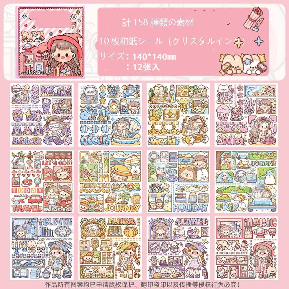 【新着商品】Alideco 12枚 内包158の素材を シール フレークシール コラージュ 素材 ペーパー 素材紙 レースユートピアステッカー レトロかわいい女の子 海外 韓国 シール帳 ,メモ用紙ノート素材、日記装飾用品 (qihuanmaoxian)