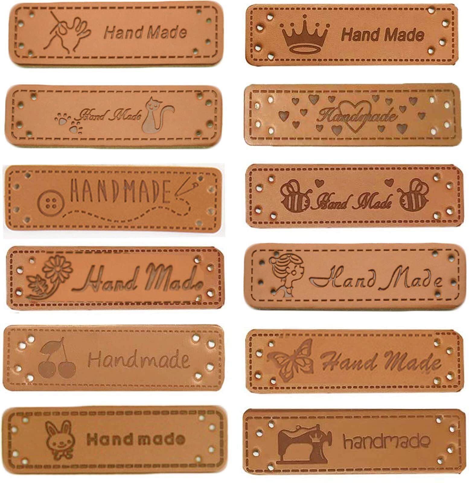 ハンドメイド用タグ ラベル 綿 レザーラベル 100枚セット 刺繍タグ 合皮 ワッペン ラベル タグ 手芸 縫製 DIY ハンドメイド 靴 帽子 衣服 手作り用 裁縫 装飾 (革タグ)