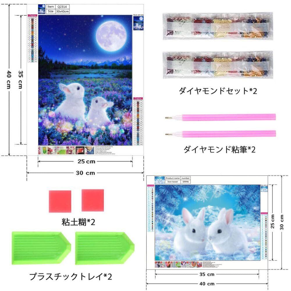 【2022最新】サムコス ダイヤモンドアート キット ダイヤモンドの絵画 2個セット きれい 可愛い 全面貼り付け 5D ダイヤモンドアート 初心者 大人の子供 DIY 手芸キット 家の壁の装飾(ウサギ匹)
