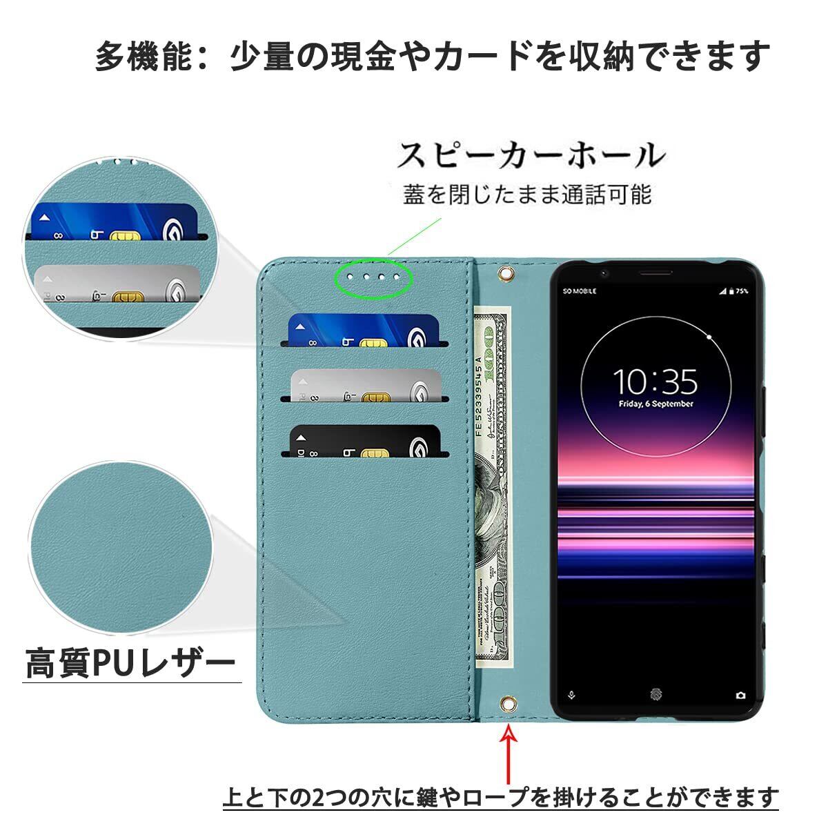 Xperia 5 III ケース 手帳型 高質PUレザー Xperia 5 III カバー SO-53B ケース エクスペリア5 iii ケース 携帯カバー 耐衝撃 SOG05 皮革 内蔵マグネット開閉式 ベルトなし スマホケース おしゃれ カードポケット スタンド機能 便利 スプラット同梱 携帯ケース ヘイズブルー