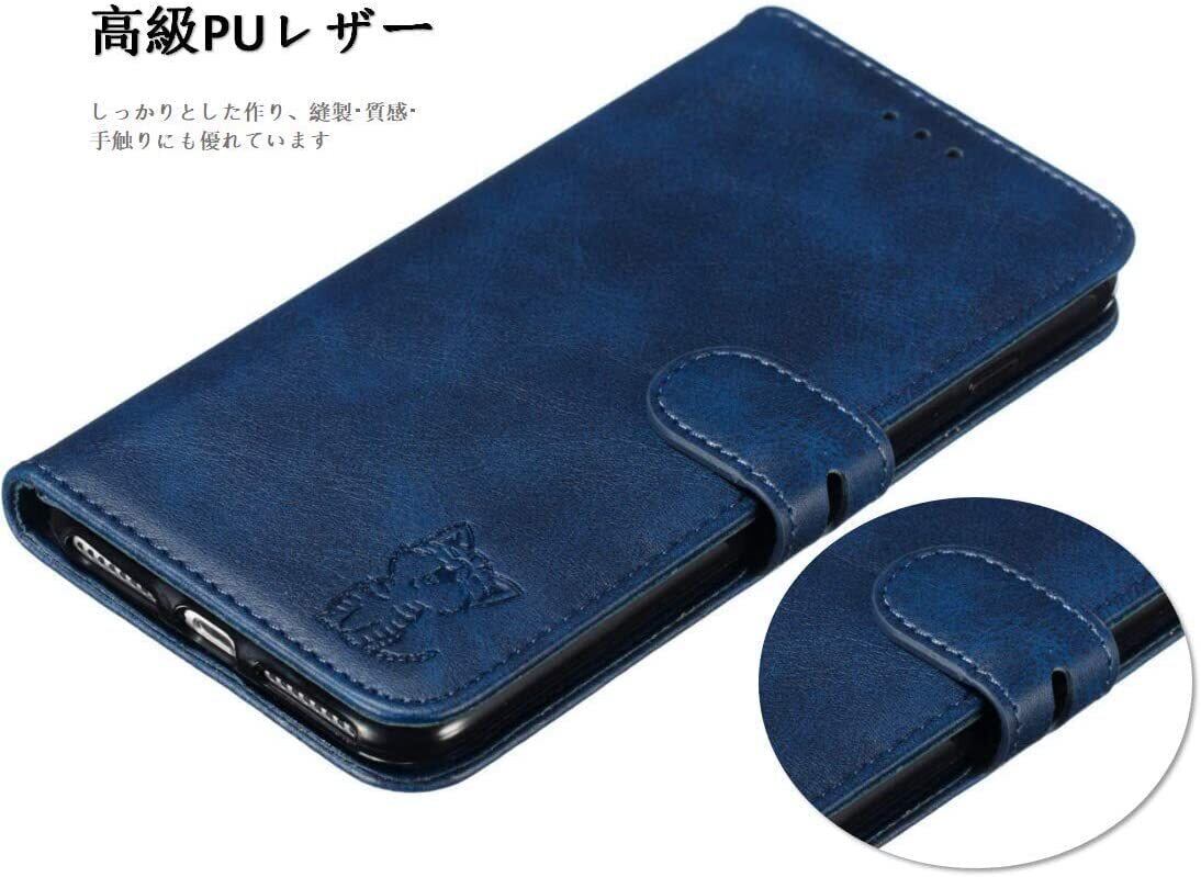 iPhone se2 ケース 手帳/iPhone se3ケース 手帳 iPhone8ケース手帳/ iPhone se 2020 第二世代 ケース/iPhone7ケース手帳 /iPhone6ケース手帳 アイフォンSEケース (2020年モデル) アイホン7/8ケース iphone6/iphone 8/ iPhone SE3 ケース 第3世代 iPhone se2022ケース ネックストラップ付 かわいい おしゃれ 猫柄 ねこ ストラップホール付き 薄い 軽い スタンド機能 (iPhone8/7/6/6s/SE2020, ブルー)