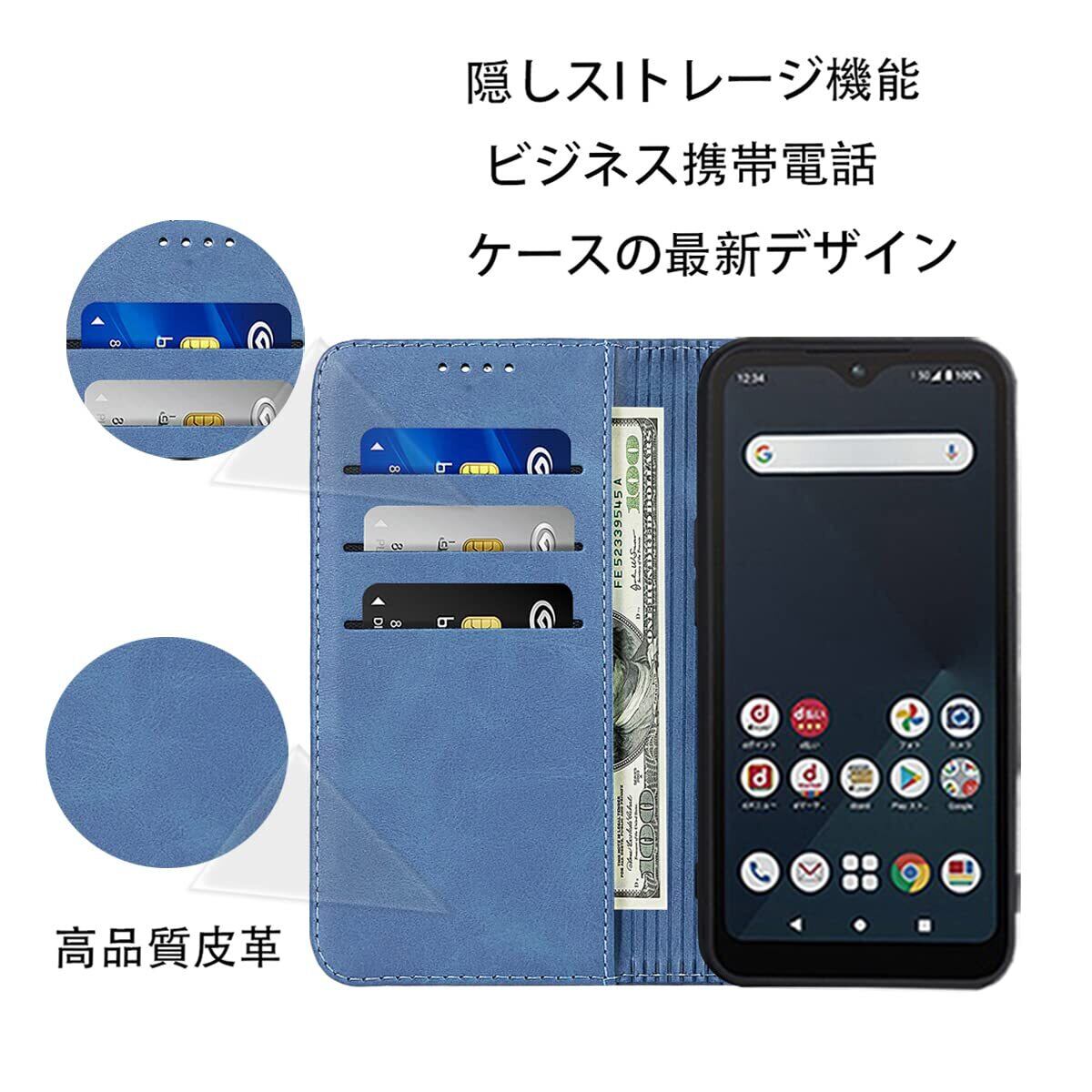 【カードポケット付き】:財布型ケースとして、名刺やお札などを入れるカードポケットがつき、ちょっとしたお出かけにもスマホケース一つでOK!日常生活に便利です。ただし、カードを入れ過ぎると、閉まらない場合がありますので、ご遠慮ください。