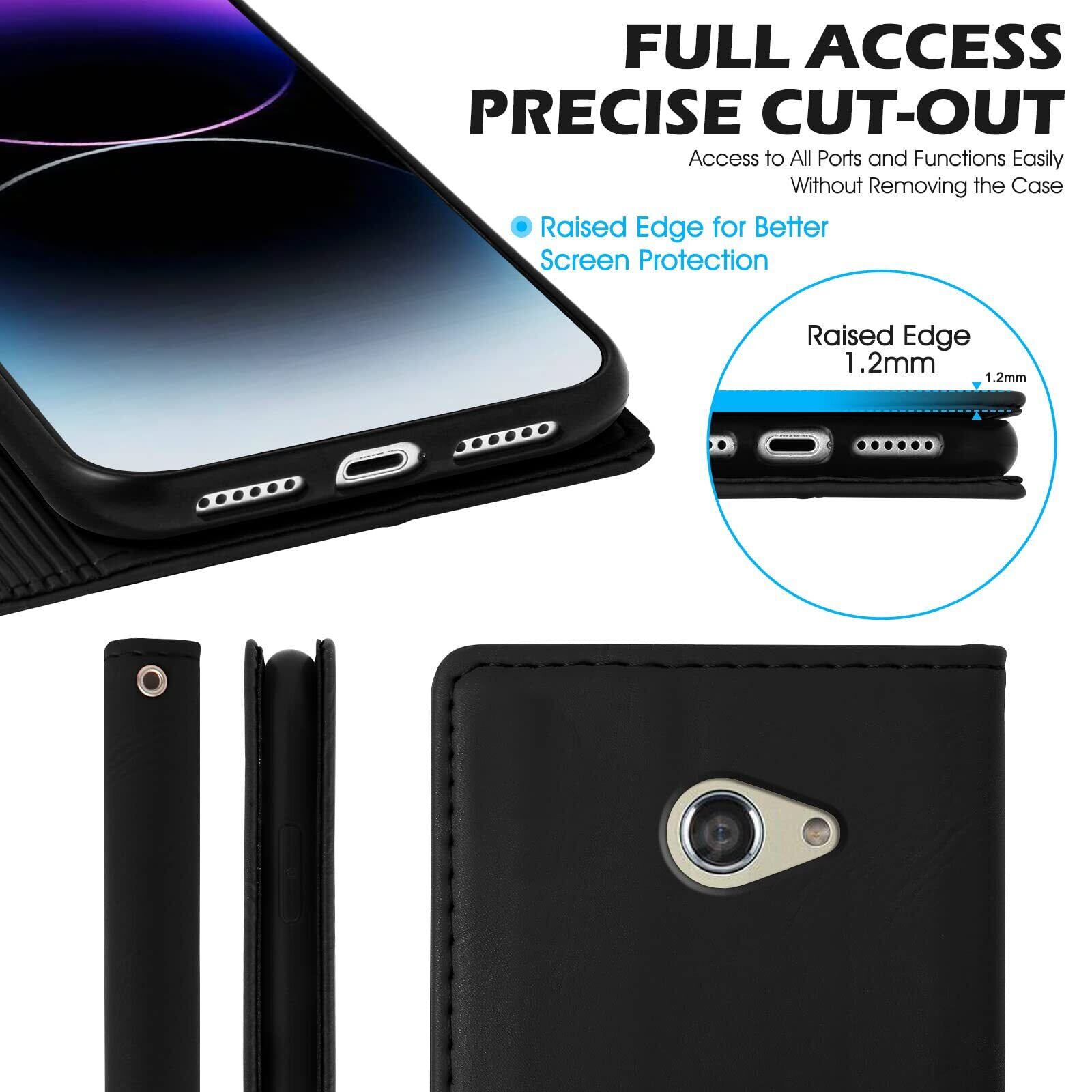 Kedic Basio4 ケース 手帳型 KYV47 ケース 可愛い笑顔の猫模様 手作り BASIO4 KYV47 携帯カバー ベイシオ4 スマホケース 手帳型 おしゃれ カード入れ 財布型 と横方向のスタンドが 多機能 京セラ basio4 カバー 内蔵マグネット式 純色シンプルデザイン Basio 4 Kyv47 ケース かんたんスマホ2 ケース 黒