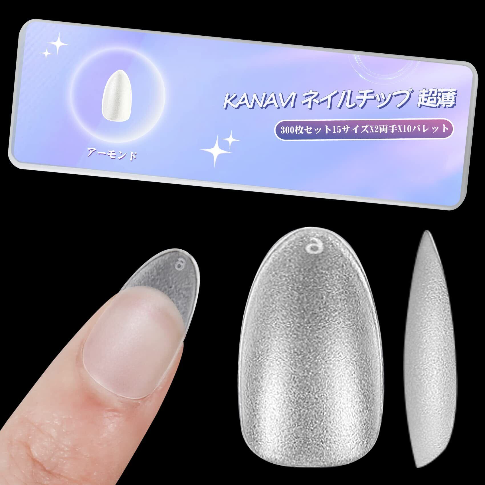 【2022最新】Kanavi ネイルチップ ショートオーバル サンディング済みネイルチップ 300枚セット 15サイズ ショート フルカバー プレーンチップ クリアチップ 練習用 業務用 セルフジェルネイル (アーモンド)
