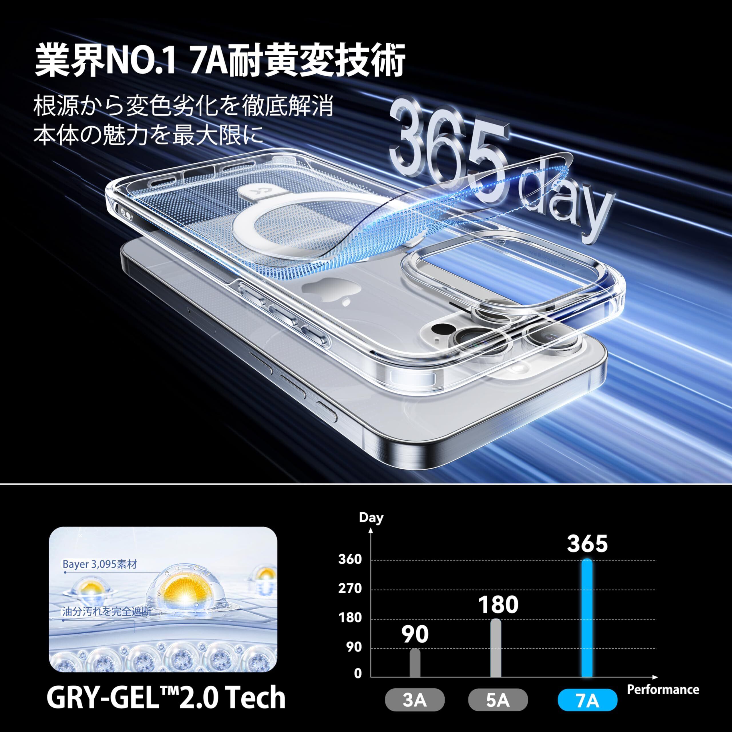 【極透明・美しさを還元】透明ケースが黄変しない「ClearLock浸透テクノロジー」を開発し、紫外線や化粧品・手汗・ハンドクリームなどによるプラスチックの黄変を徹底防ぐ。透明感が長く続く。iPhoneの美し外観をいつまでも還元!