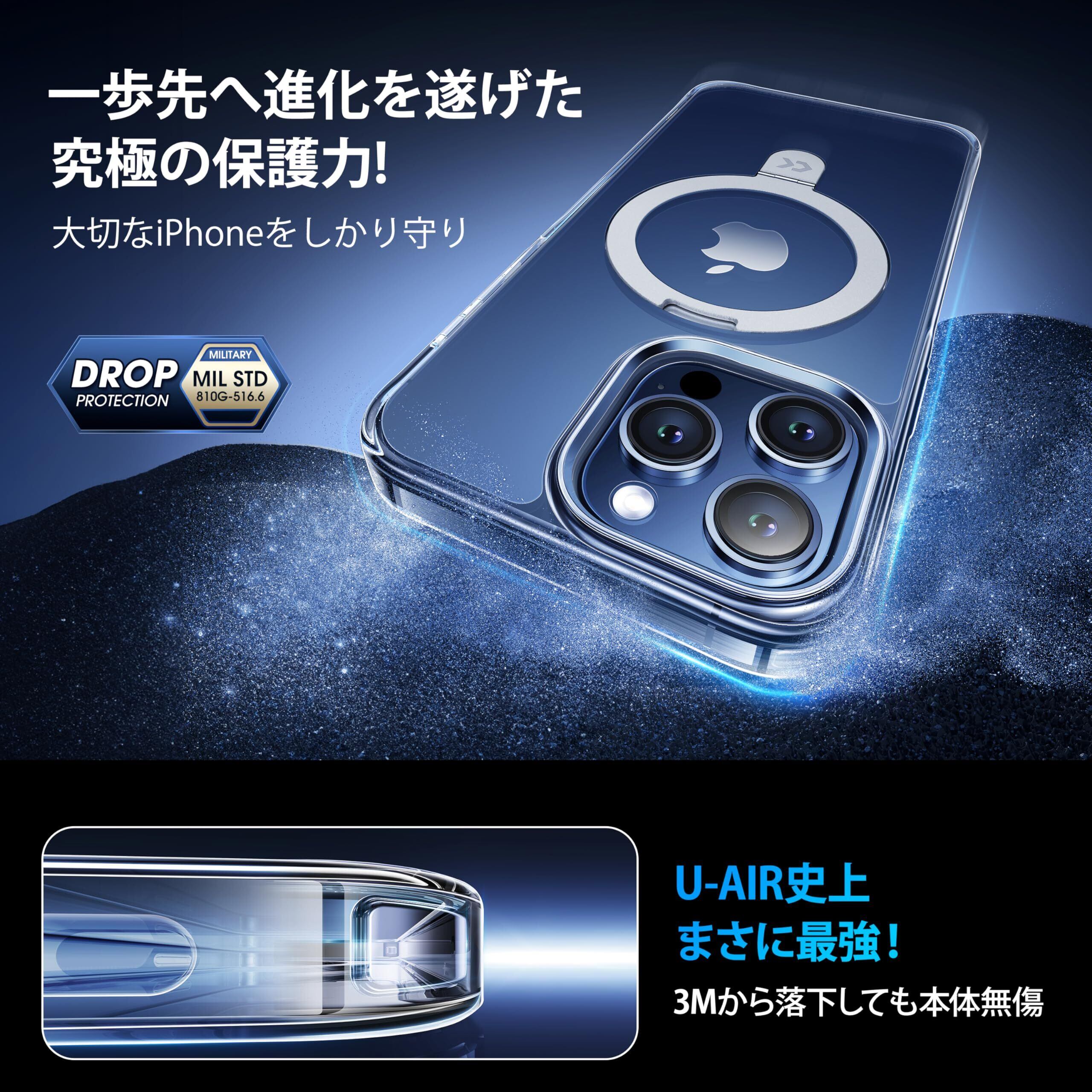 【米軍規格・安心の衝撃対策】10年にわたる研究開発の末、iPhoneに最適なU-AIRを開発、四隅に搭載した。ポケットから取り出す、歩きスマホや片手利用などでふとした際に落としてもよく保護。カメラ部分にまでこだわり抜いた設計で、保護性能を最大限に発揮。