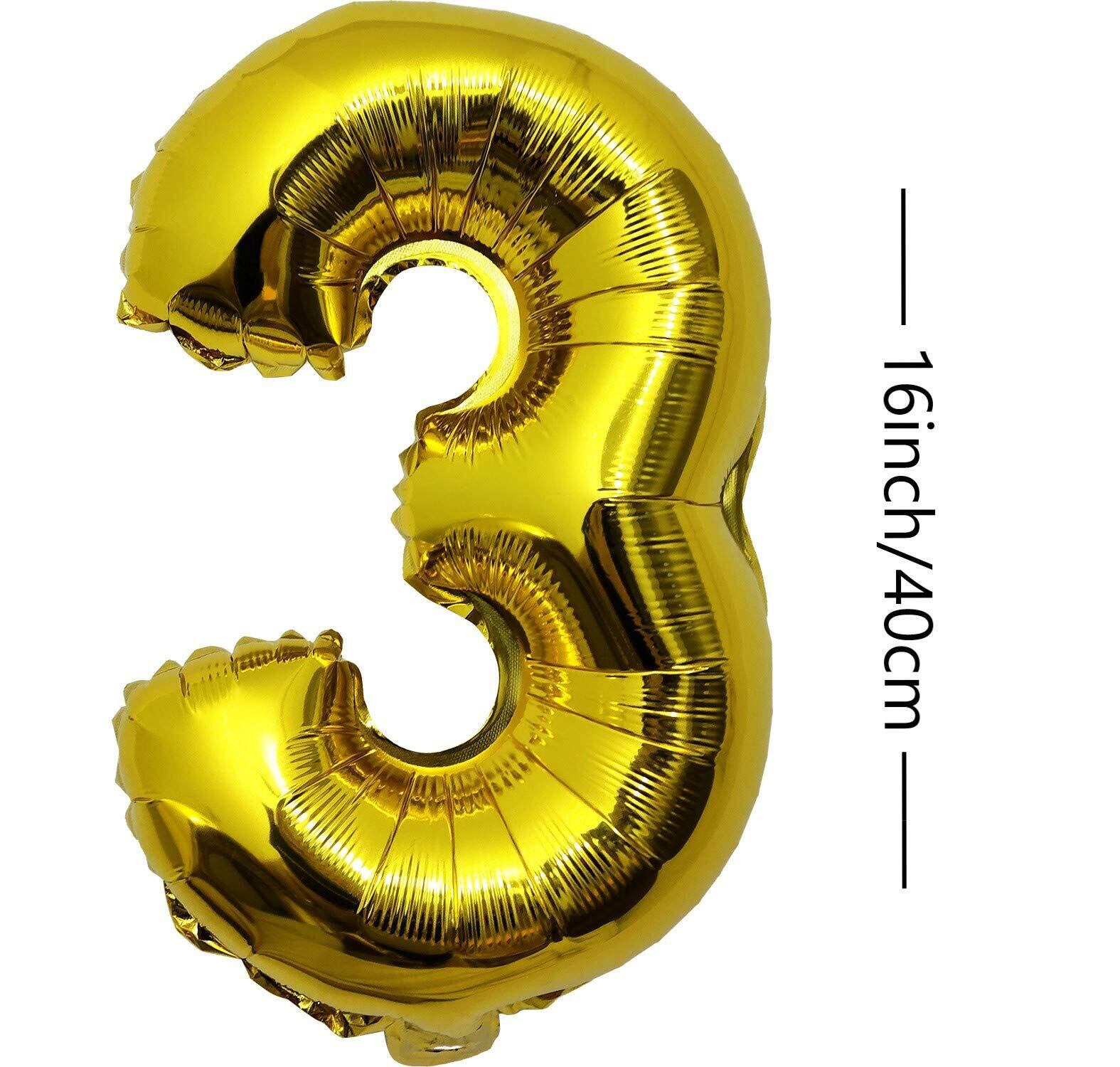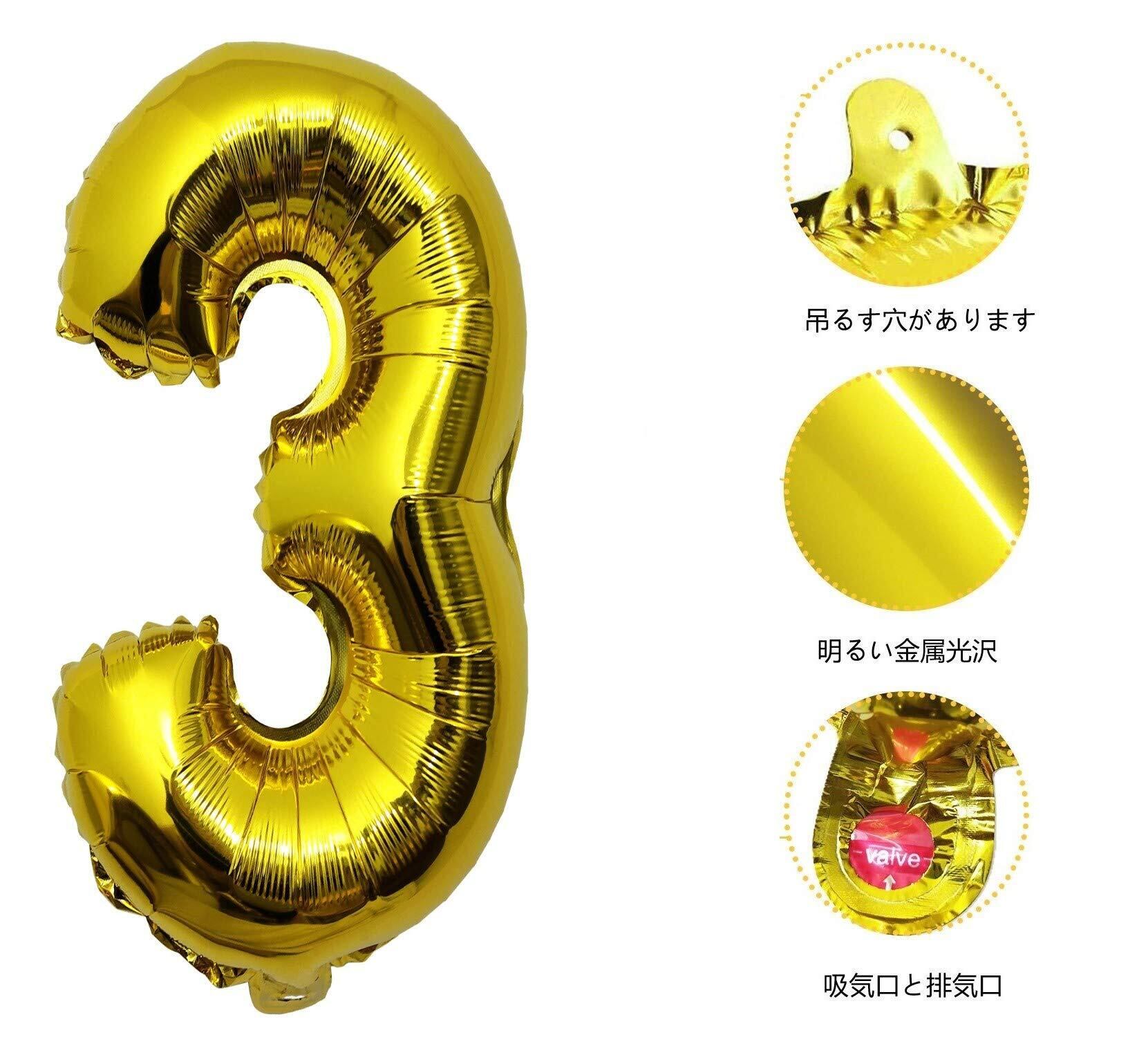 数字バルーン 3 バースデー パーティー 誕生日 風船 飾り セット ゴールデン 16inch,40CM (3)
