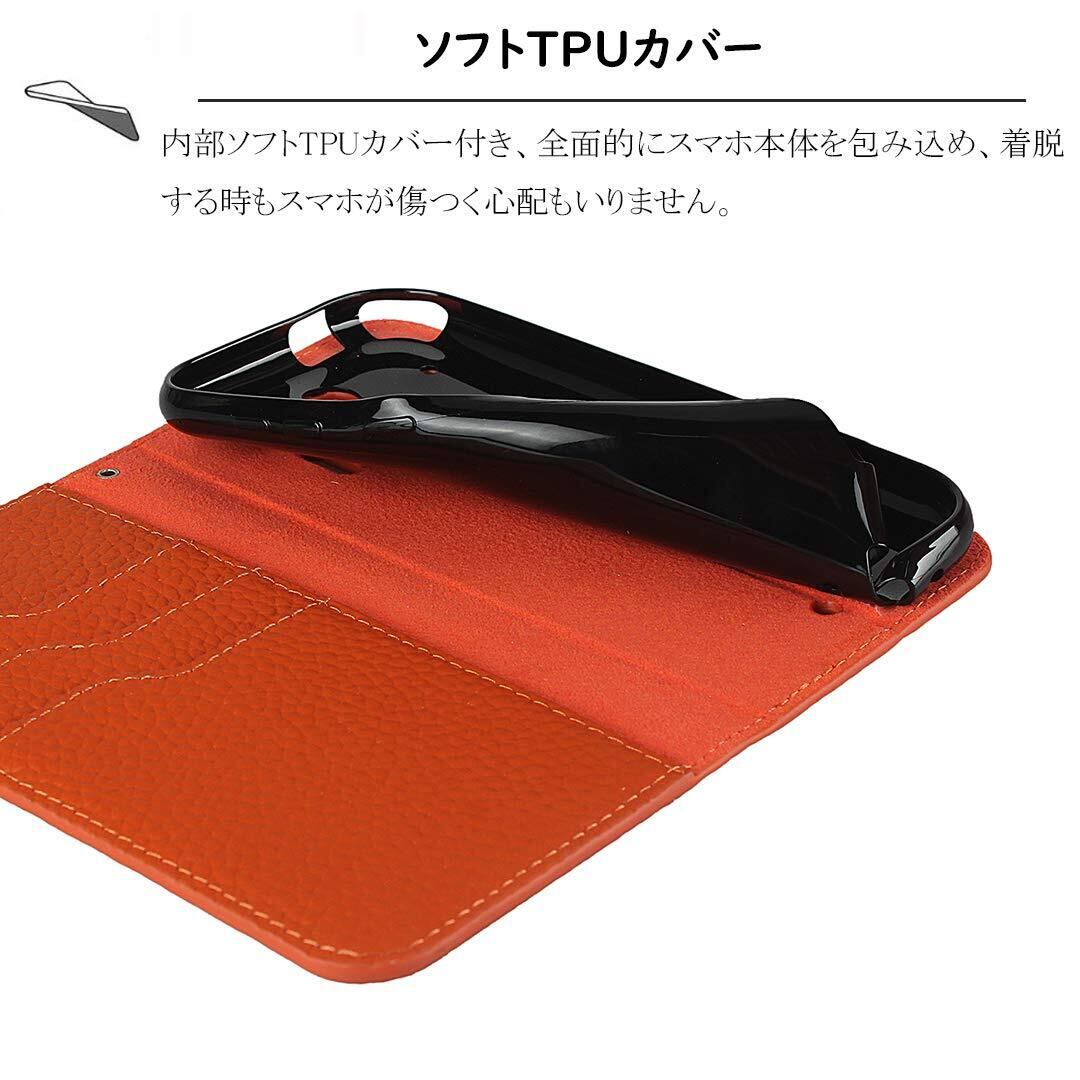 【在庫セール】Elick らくらくスマートフォン F-42A らくらくスマートフォン me F-01L ケース 手帳型 高級牛革 らくらくスマートフォン F-42A ケース 手帳型 本革 マグネット式 スタンド機能 カード収納 ストラップ付き FUJITSU F-42A ケース カバー オレンジ