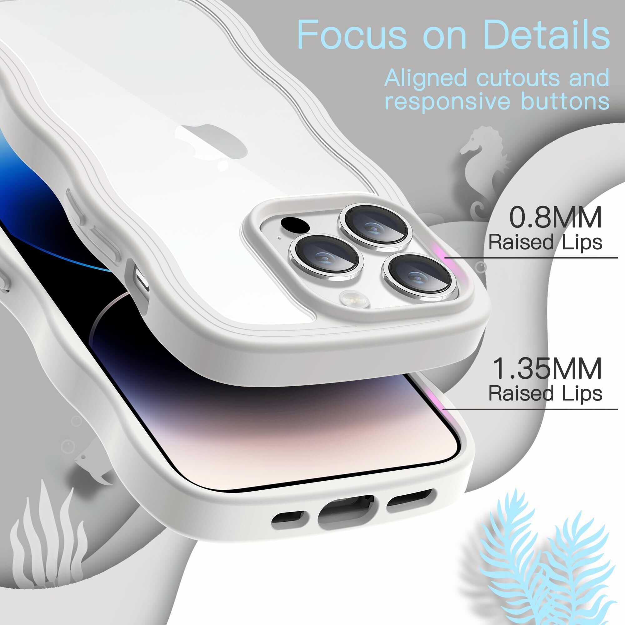 JEDirect iPhone 14 Pro 6.1インチ用 かわいい ケース 波状フレーム うねうね 耐衝撃 スマホカバー 女性用 女子向け クリア ハードPCバック