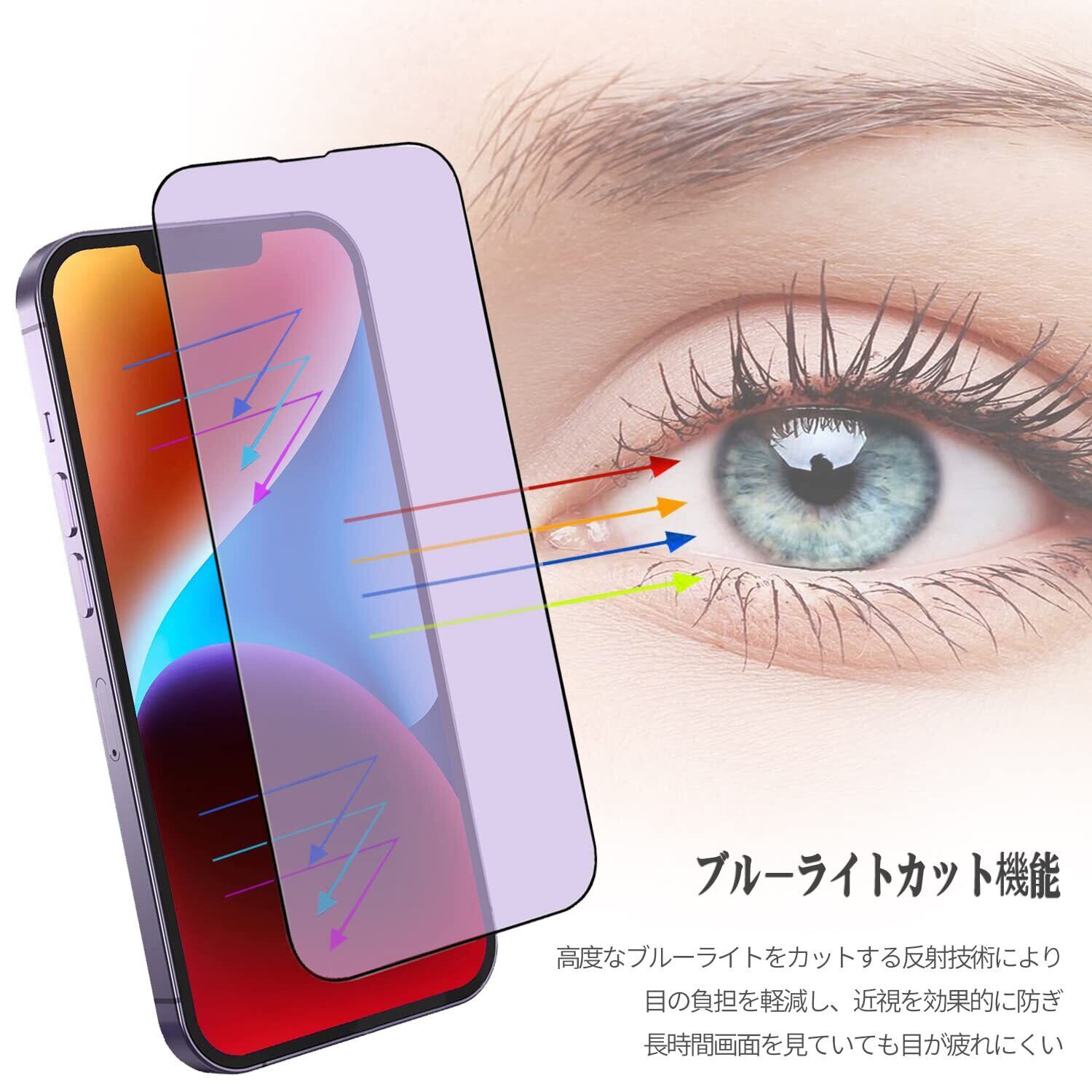 【2枚入り】ガラスフィルム iPhone 13 Pro/iPhone 13 / iPhone 14 用 6.1インチ対応 ブルーライトカット 全面保護 液晶保護フィルム 硬度9H強化ラス 気泡ゼロ 指紋防止 ガイド枠付き 貼り付け簡単