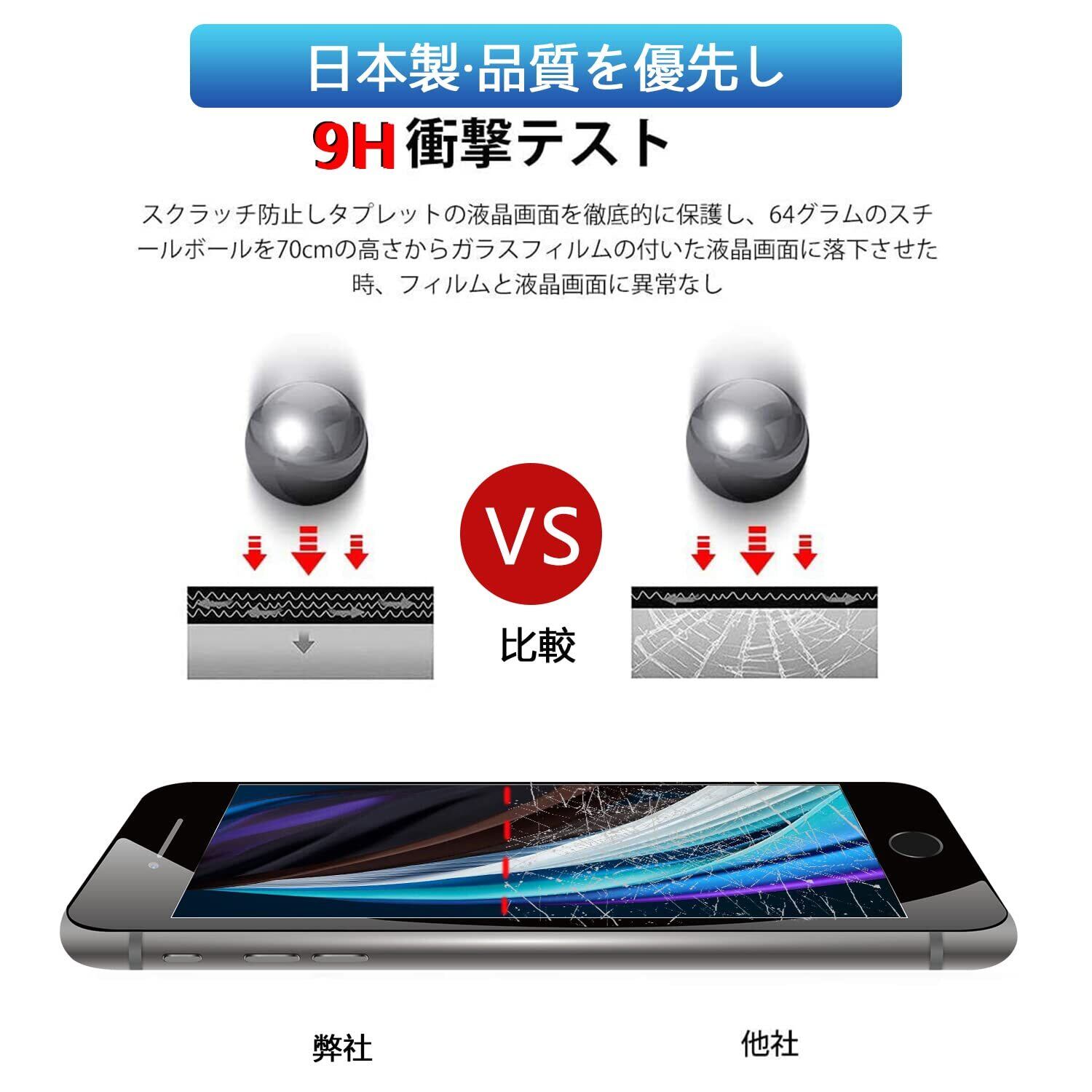 【対応機種】Jnsf覗き見防止はiPhone SE2のために設計され、スマホのリアルなサイズにより製造、日本製素材の採用、9H硬度、防爆裂、飛散防止加工で、破片が飛び散らないように設計されています。高品質製品の製作プロセスに厳しく基づき、カット加工、精密に彫刻、ライトスイープ、超音波清潔、強化、検査、袋詰め七つのステップを経てスマホに完璧的にフィットした製品を製造されます。