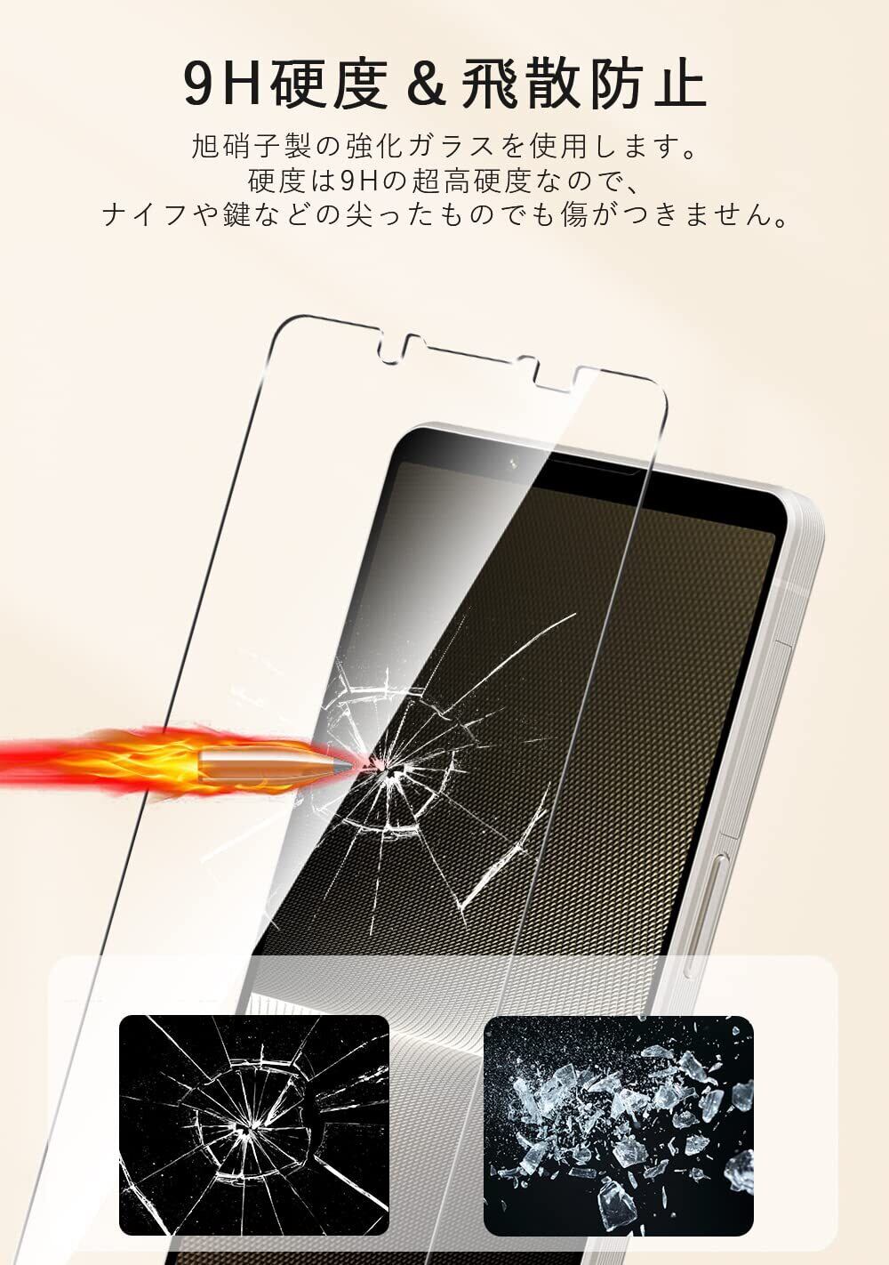 【優れた品質】日本国内最大手のガラスメーカー、旭硝子製の強化ガラスを使用。硬度は9Hの超高硬度なので、ナイフや鍵などの尖ったものでも簡単には傷がつきません。カメラレンズ全面を守り、バッグやポケットの中で付いてしまう引っかき傷に対して高い耐性を持ちます。