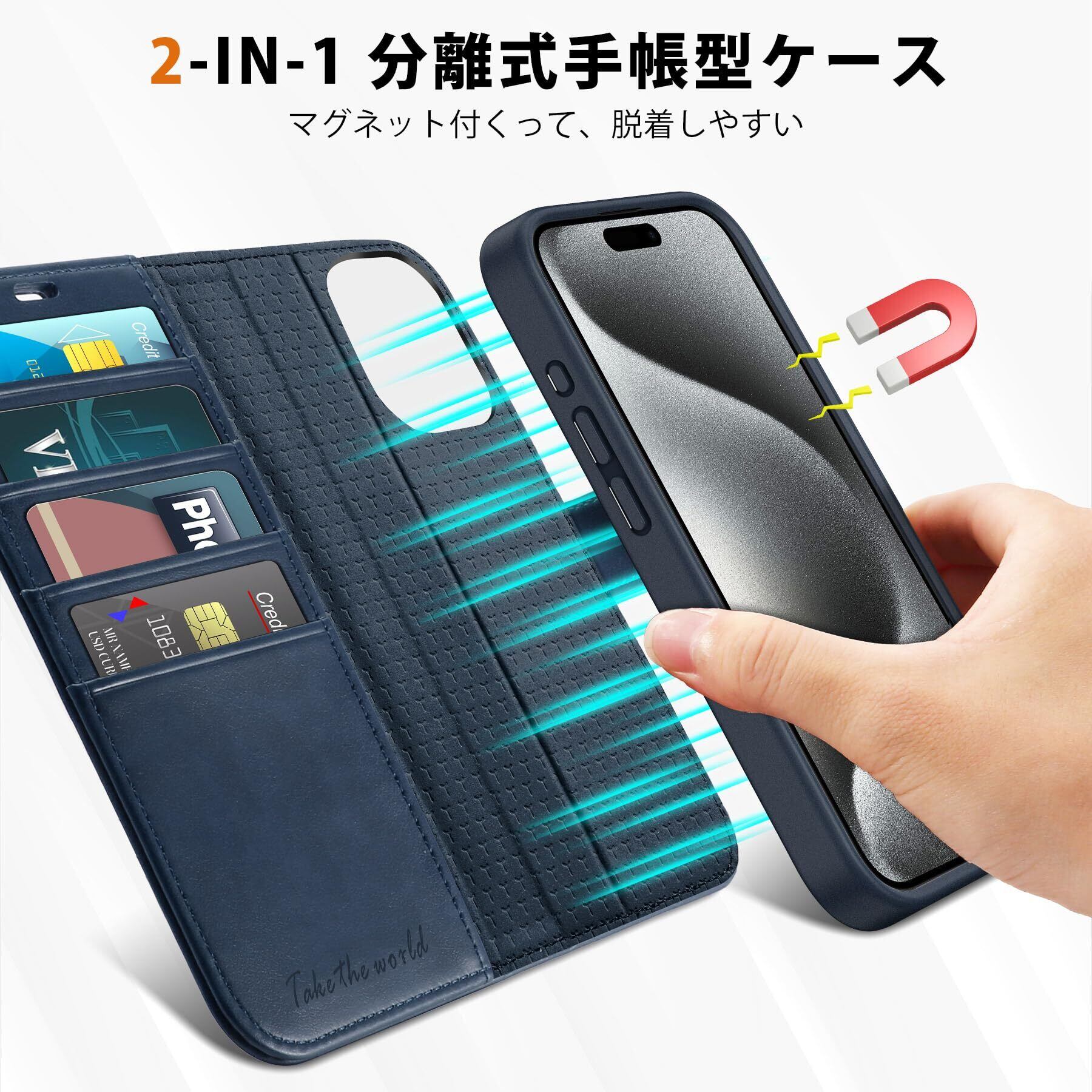 TUCCH iPhone 15 Pro Max 対応 ケース 手帳型 2 in 1 分離式 iPhone 15 プロ マックス 手帳型 取り外し可能 カード収納 [RFIDブロッキング] スタンド機能 高級PU合皮 衝撃吸収 アイフォン15プロマックス ケース 2023年発売 iPhone 15 プロマックス 6.7インチ 対応 ダークブル (2 in 1分離式)