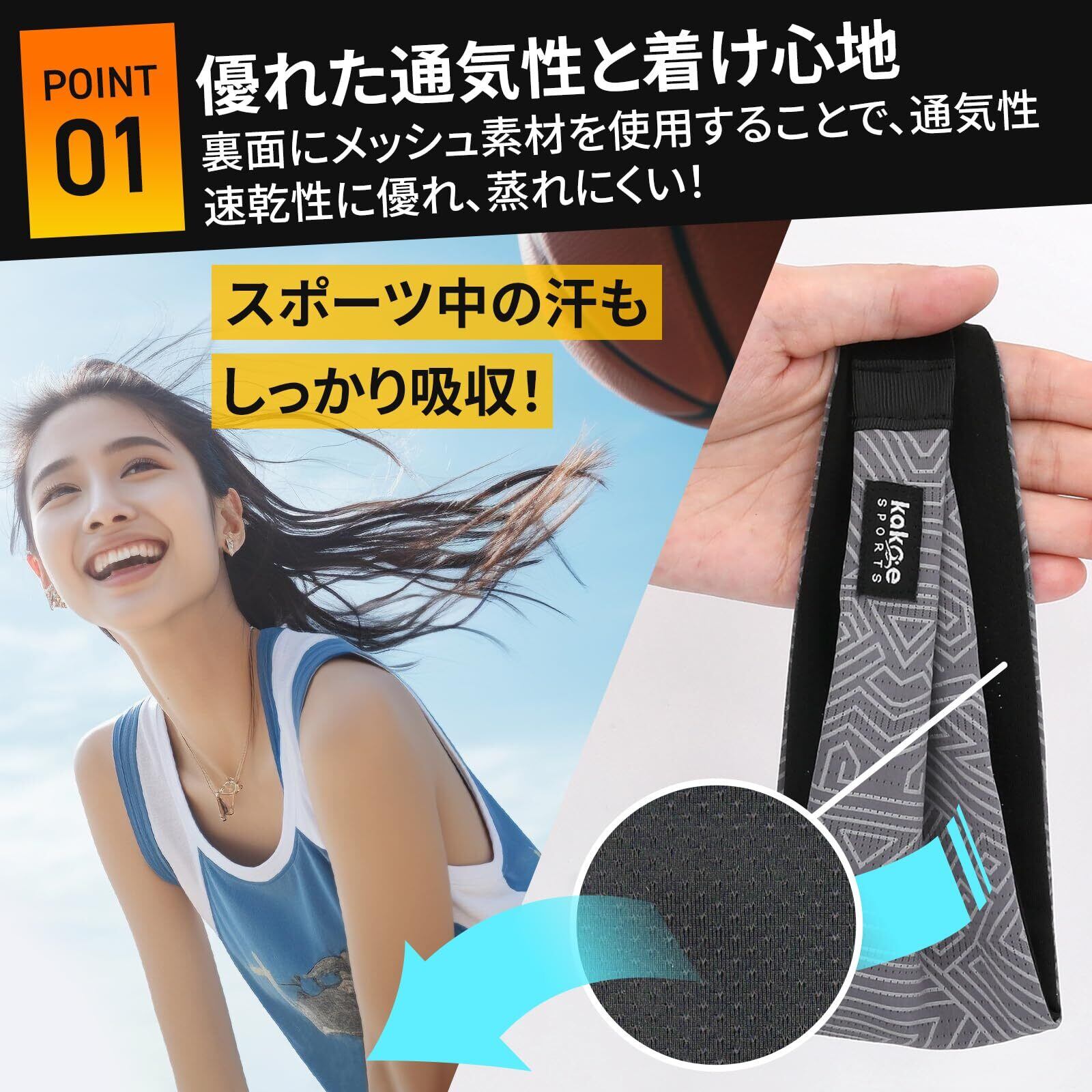 【柔軟な伸縮性とフィット感】このヘアバンドは、快適なフィット感が特徴です。柔軟かつ伸縮性があり、頭にしっかりとフィットするため、激しい運動中でもズレることがありません。滑りにくく、しっかりと額を覆う設計になっています。