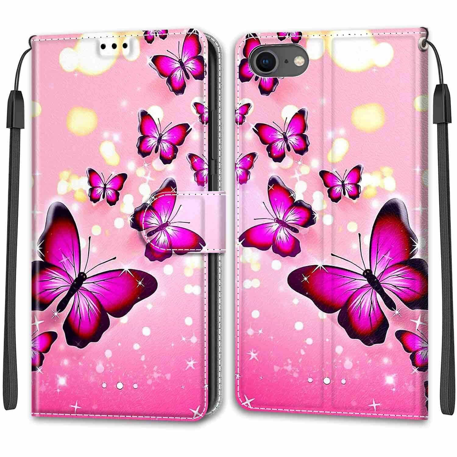 KENHONER iPhone SE ケース 第2世代 第3世代 iphone8 iphone7 手帳型 スマホケース 携帯カバー PUレザー iphoneケース se カード収納ケース マグネット式 スタンド機能アイフォンse ケース4.7インチ対応 360度保護 (iPhone SE2 iPhone SE3 iPhone8 iPhone7) ピンクの蝶