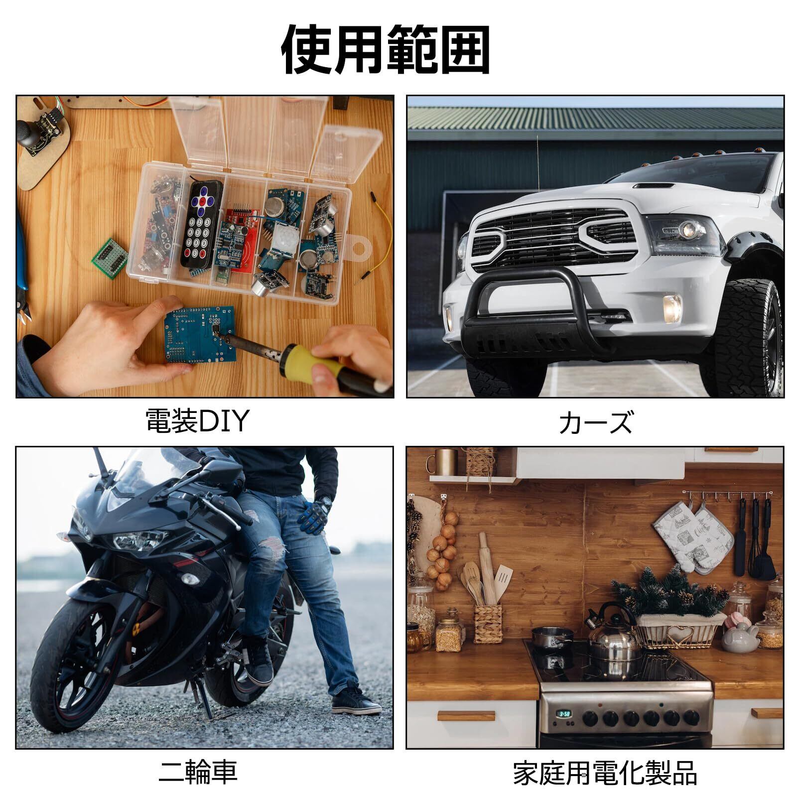 【幅広い用途】ギボシ端子は自動車、バイク、輸送、機械、配電、電気電子産業、家庭、新エネルギーおよび他の産業で広く使用されています。