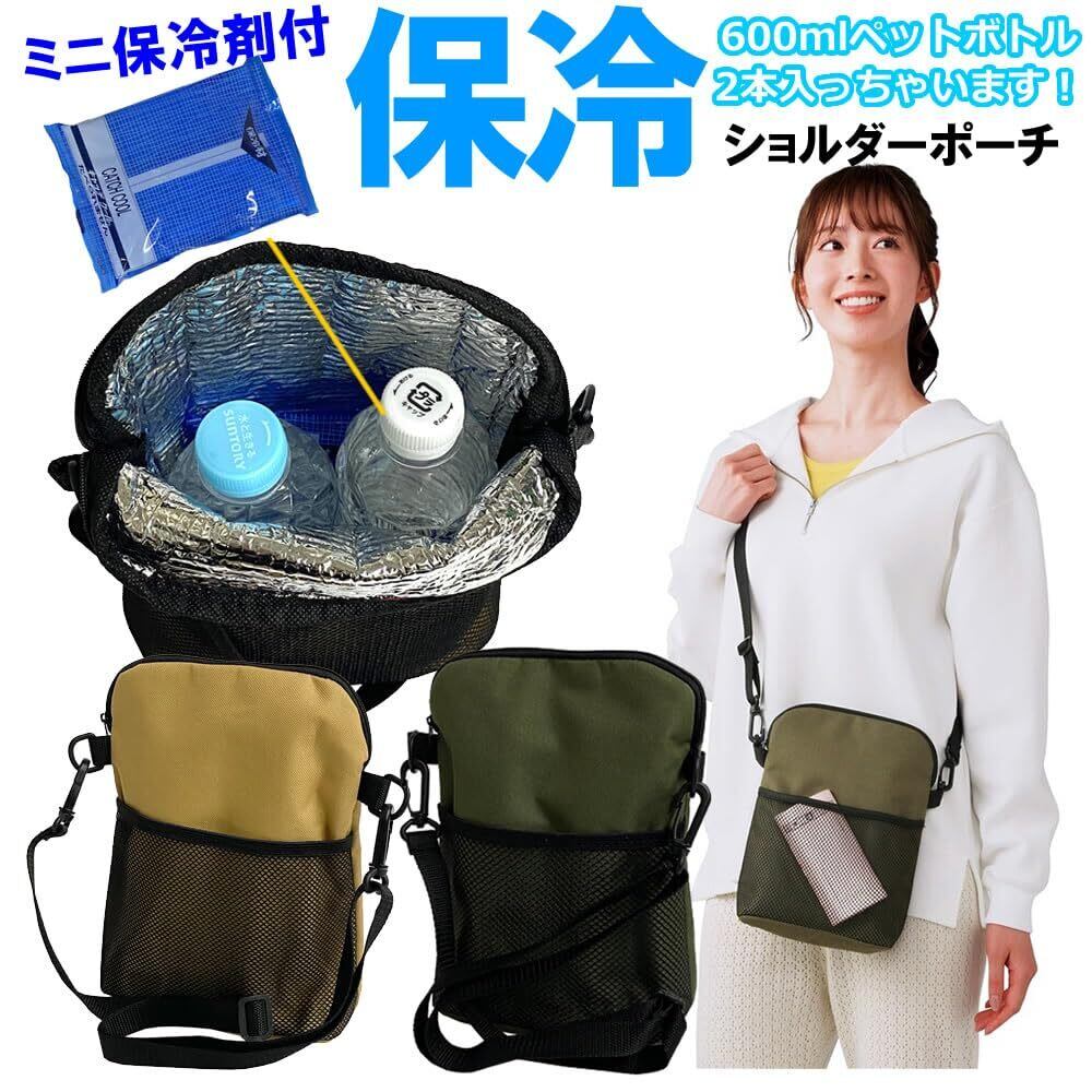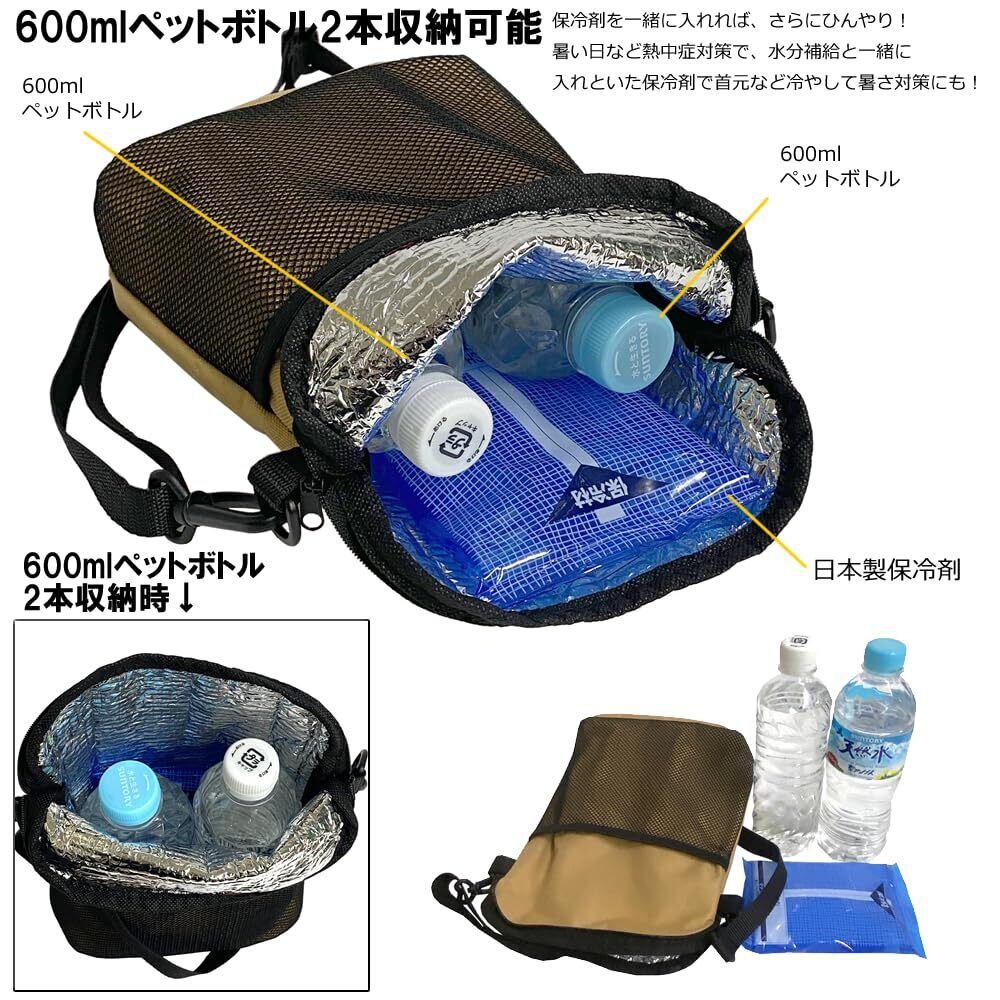 アクティブに動く日にぴったり 手頃なポシェットサイズ。 保冷保温機能付き!ペットボトル2本収納可能、ミニショルダーバッグ 暑い日には冷たいペットボトルを入れて持ち歩けば、 飲みたい時がいつも気持ちのいい冷たさキープ! ショルダーベルトは長さ調節可能&取外し可能なのでポーチにもなります。 600mlペットボトルが2本収納できました! 全面アルミ加工になっているので、保冷機能はもちろん、汚れても拭いてきれいになるので、清潔に保つこともできます!!
