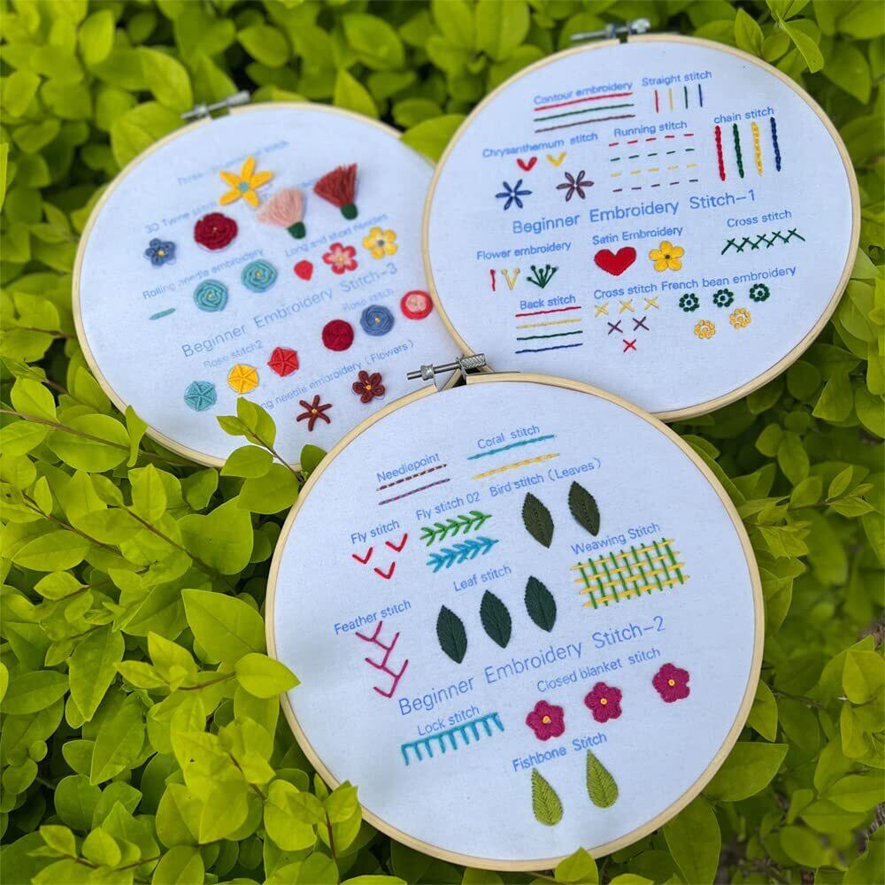 【入門キット】正真正銘な新米刺繍、初心者向けに設計された基礎図案練習セット、日本語の説明書が付属しており、基本的なテクニックをすばやく身につけるのに役立ちます。
